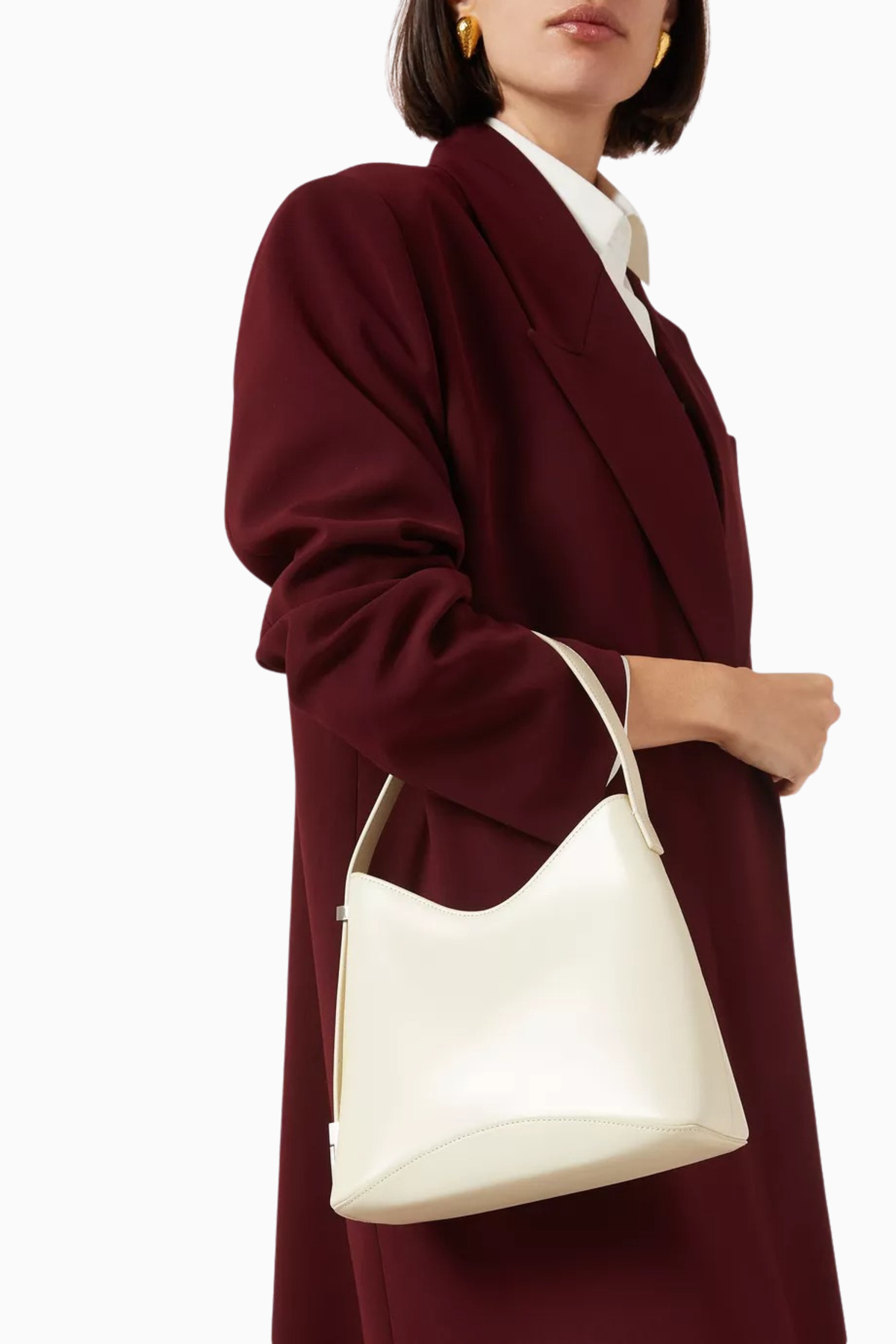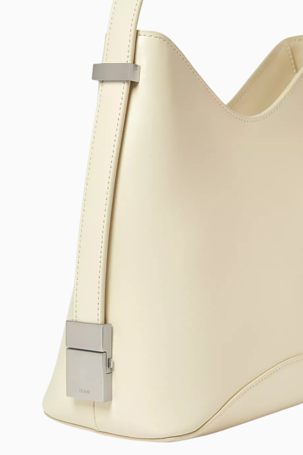 OSOI Mini Egg Bag, krem tonlu pürüzsüz deri tasarımıyla minimal şıklığı bir araya getiriyor.