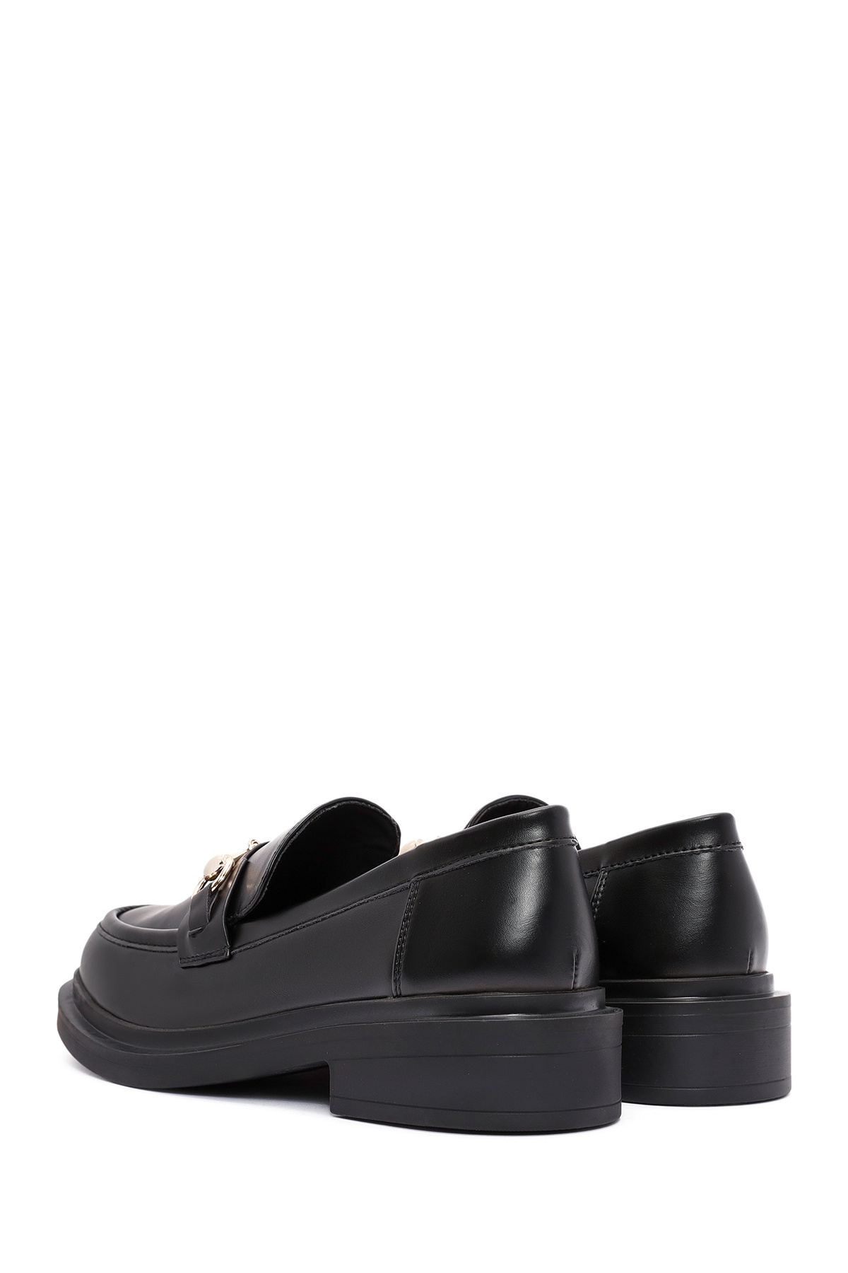 Kadın Siyah Tokalı Maskülen Loafer, Kışlık Ayakkabı 25AFD400118