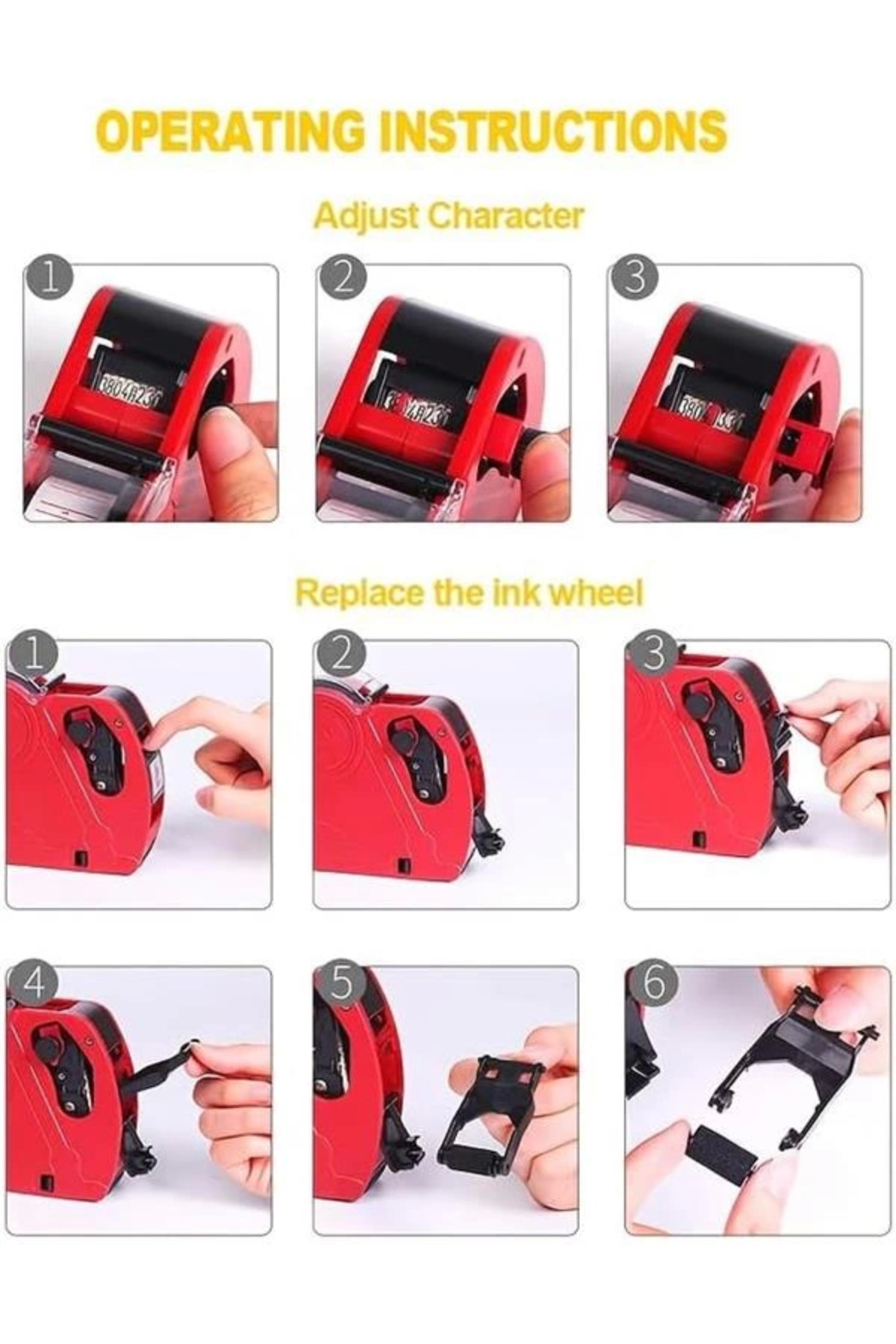 MX-5500 Etiket Makinesi Fiyatlandırma Etiket Tabancası Yeni Sürüm 8 Hane (Kırmızı)