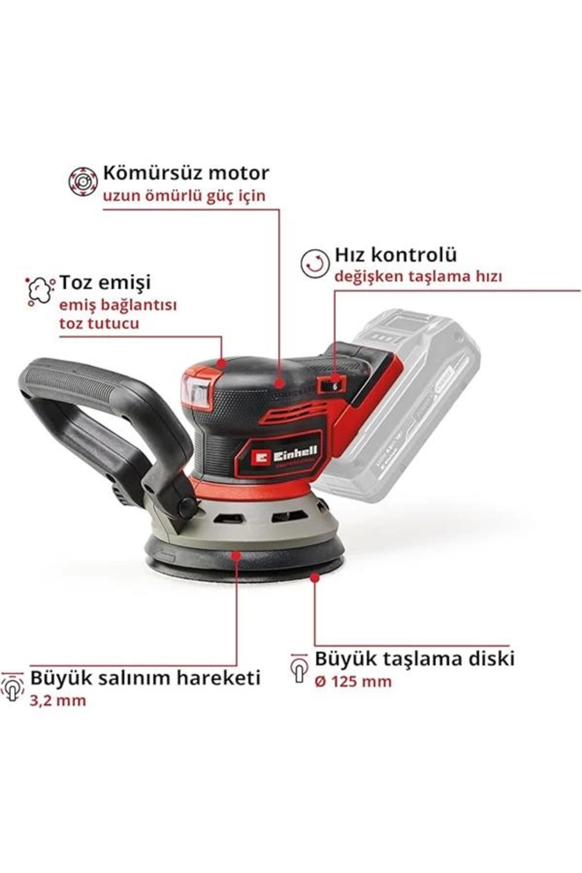 Power XChange Professional Akülü Eksantrik Zımpara TPRS 1832 Li BL akülerin şarj cihazlarının ve sistem cihazlarının birbirleriyle uyumlu olduğu Power XChange ailesinin bir parçasıdır PurePOWER Brushless Bakım gerektirmeyen güçlü kömürsüz motor maksimum ve daha uzun çalışma süresi sunar Kayıt sonrası motor için 10 yıl garanti geçerlidir Eksantrik hareket prensibi yüksek zımparalama performansıyla ince bir yüzey sağlar ve devir elektroniği sayesinde malzemeye uygun şekilde ayarlanabilir Kullanım Düz tasarımı Softgrip kaplaması ve çıkarılabilir ilave tutma kolu sayesinde zımpara iş parçasına yakın ve maksimum kontrol ile yönlendirilebilir Temiz çalışma Akülü eksantrik zımpara toz toplama haznesi ve katlanabilir filtreye sahip entegre toz emiş sistemiyle donatılmıştır Ayrıca harici bir süpürge bağlama seçeneği de mevcuttur Zımpara kağıdı 125 mmlik zımpara levhasına velcro sistemi ile kolayca takılır Teslimat içeriğine 3 adet zımpara kağıdı dahildir (1x P60 1x P80 1x P120) Akü dahil değildir Professional Akülü Eksantrik Zımpara TPRS 1832 Li BLSolo Power XChange akü ve şarj cihazı olmadan teslim edilir Bunlar ayrıca satılır