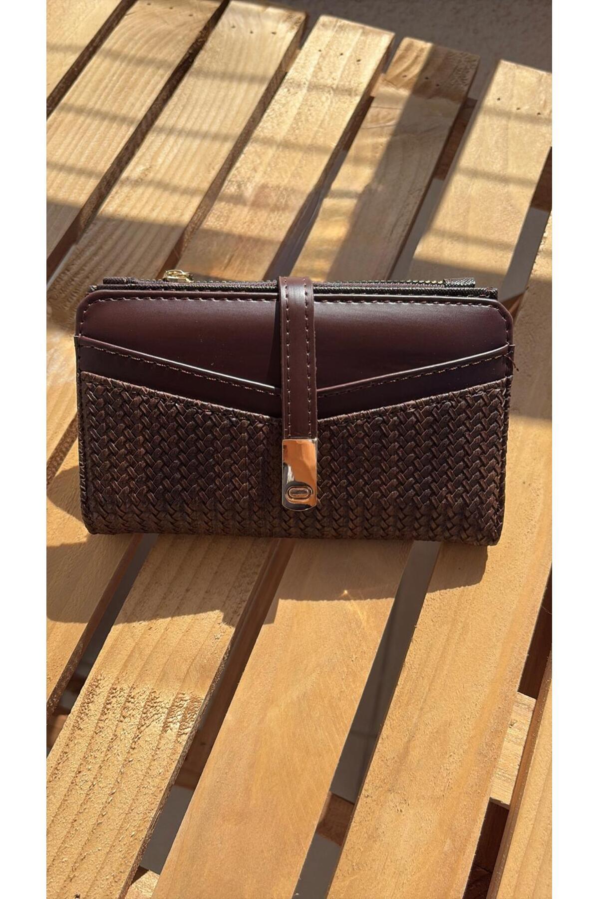 Kadın Trend Dokulu Portföy Cüzdan - Fermuarlı ve Kartlık Bölmeli