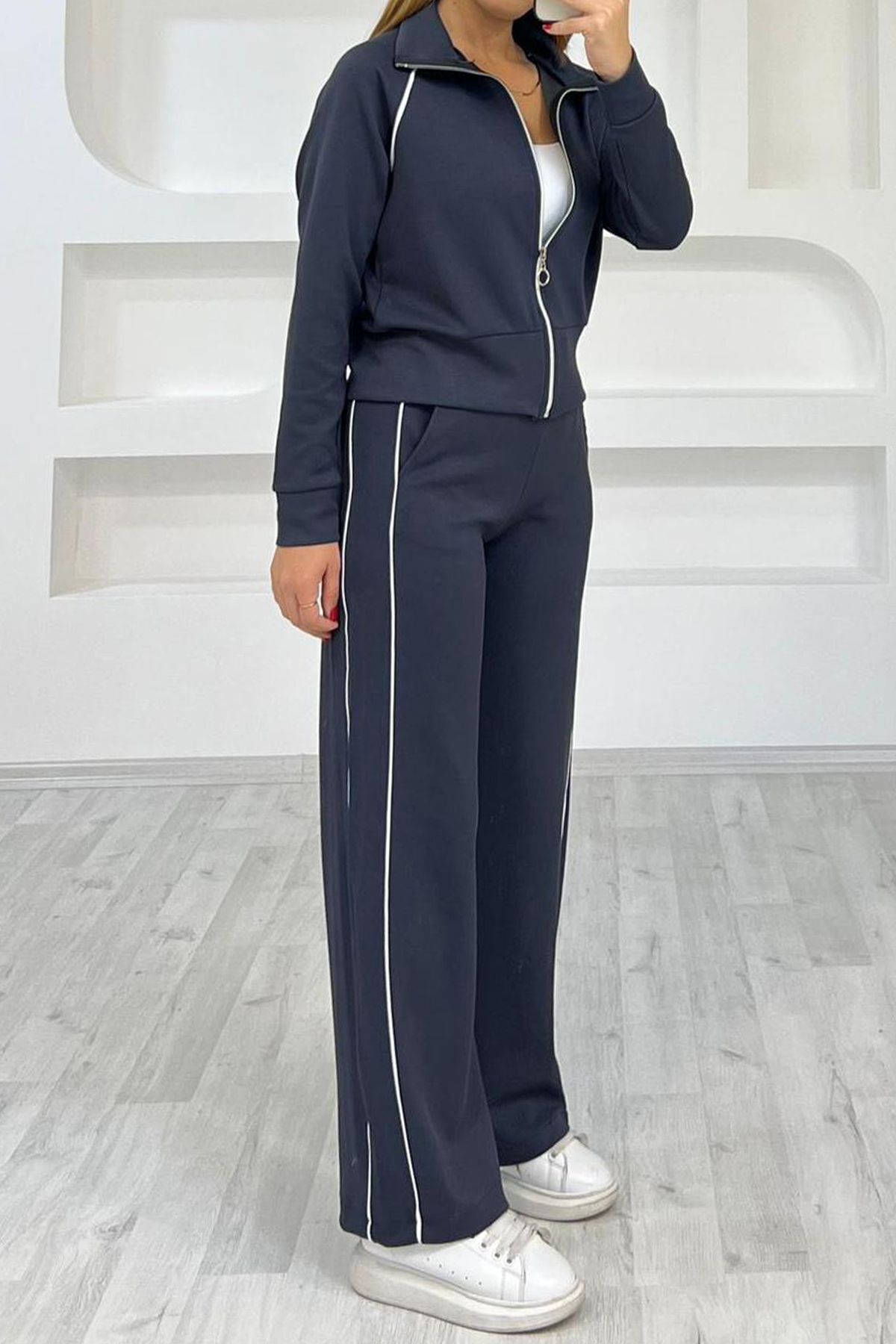 - Sweatshirt ve pantolon olmak üzere iki parçadan oluşan alt-üst takım, uyumlu bir görünüm yaratır.