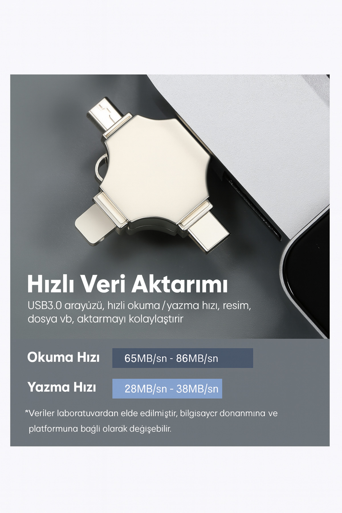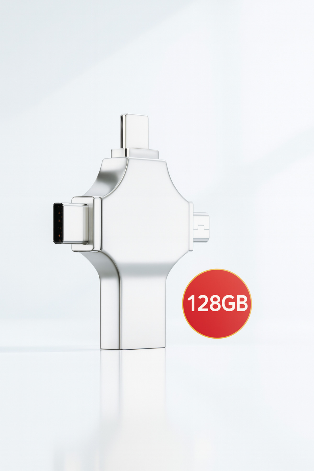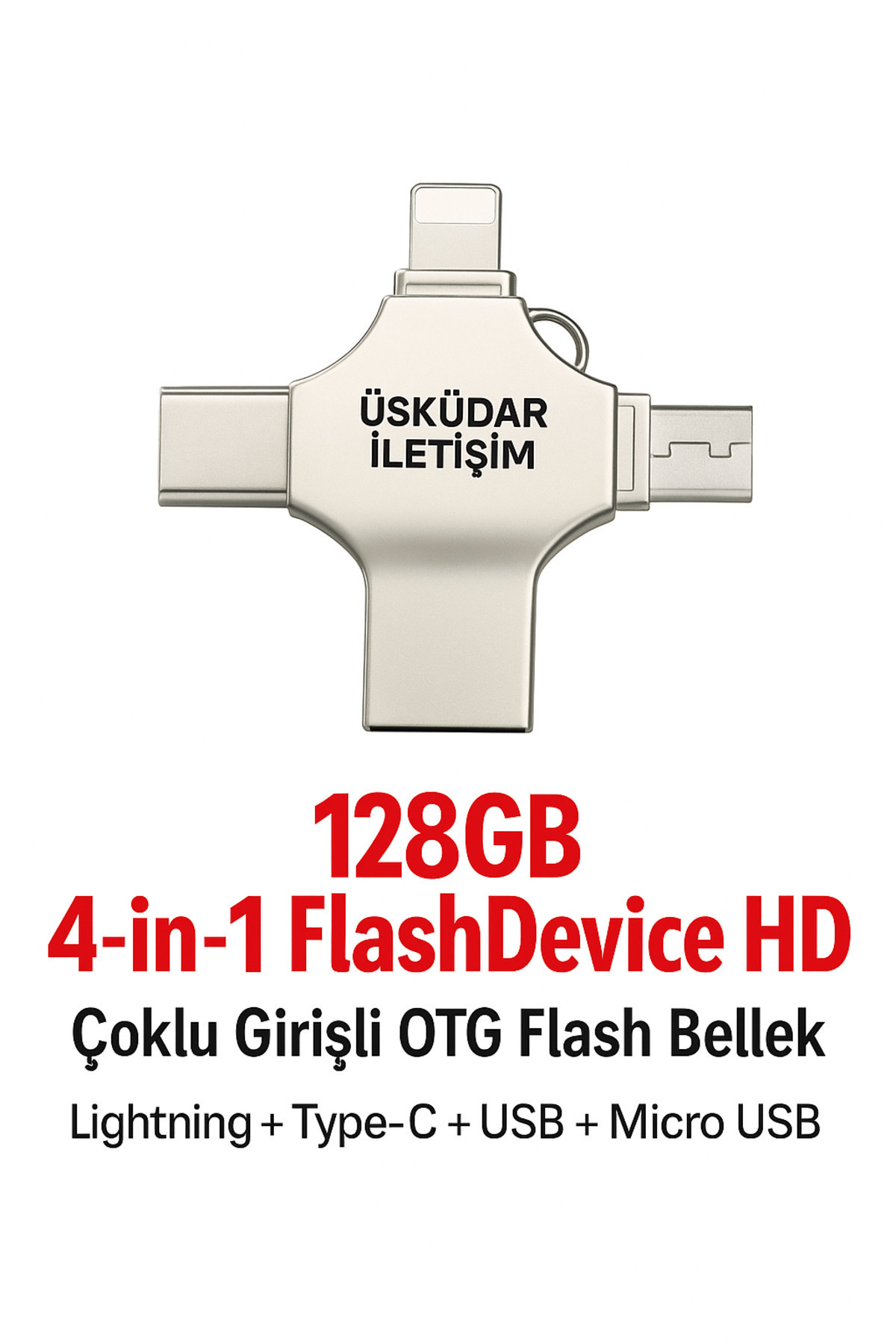 128GB 4-in-1 FlashDeviceHD Çoklu Girişli OTG Flash Bellek Lightning + Type-C + USB + MicroUSB