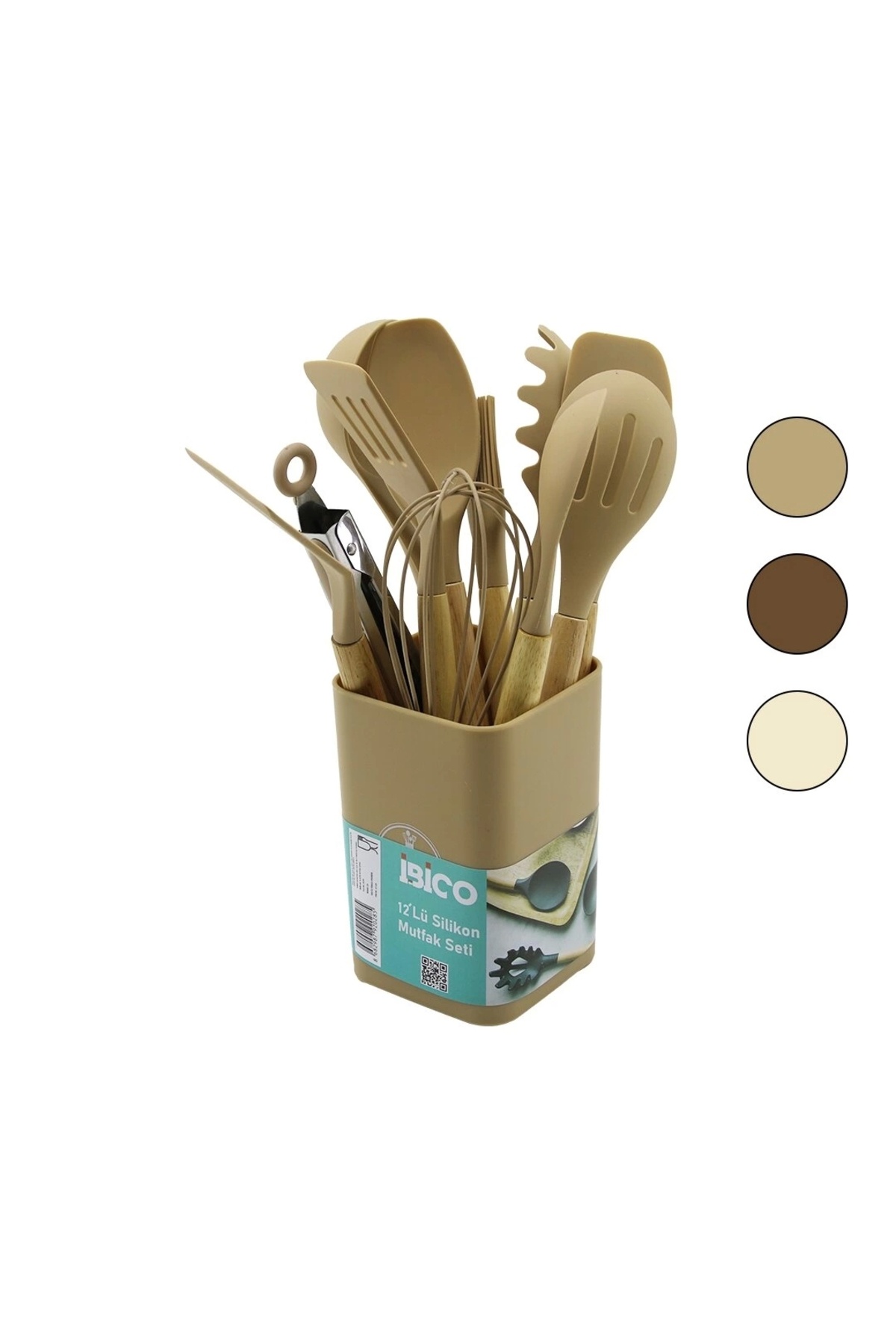 • 11PCS+KOVA SİLİKON MUTFAK SETİ BAMBU SAP 3-KAŞIK- 3-SPATULA- 1-KEVGİR- 1-KEPÇE- 1-MAŞA- 1-ÇRPC- 1-FRÇ