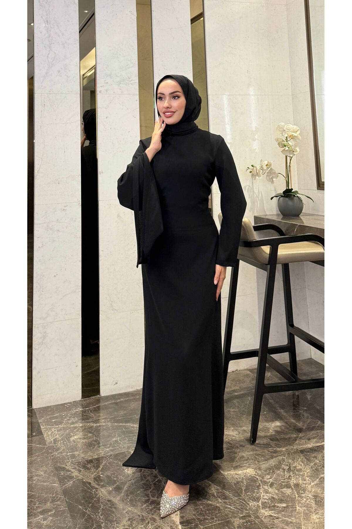 Kuyruk Detaylı Drapeli Tesettür Abiye Elbise