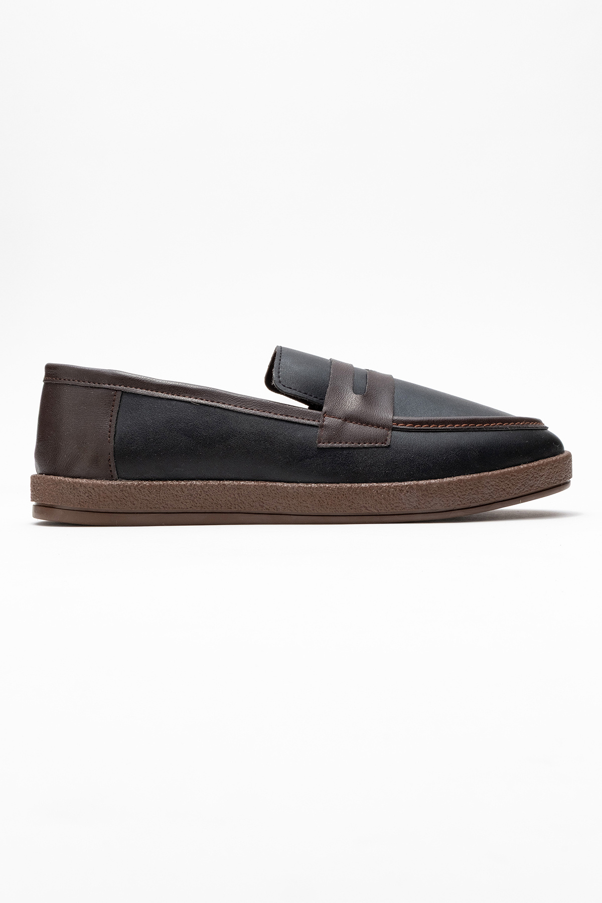 Livya Erkek Siyah Garnili Suni Deri Loafer Ayakkabı