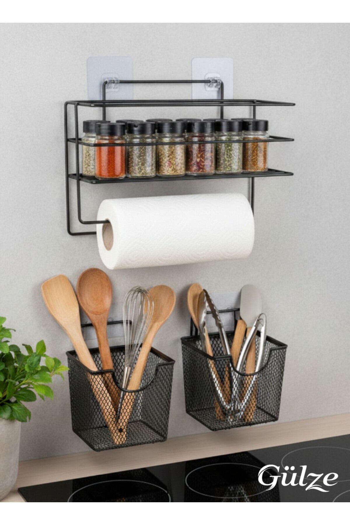 Güçlü Yapışkanlı Raflı Kağıt Rulo Havluluk-Peçetelik (Paslanmaz Metal- Mat Siyah Düzenleyici Raf)