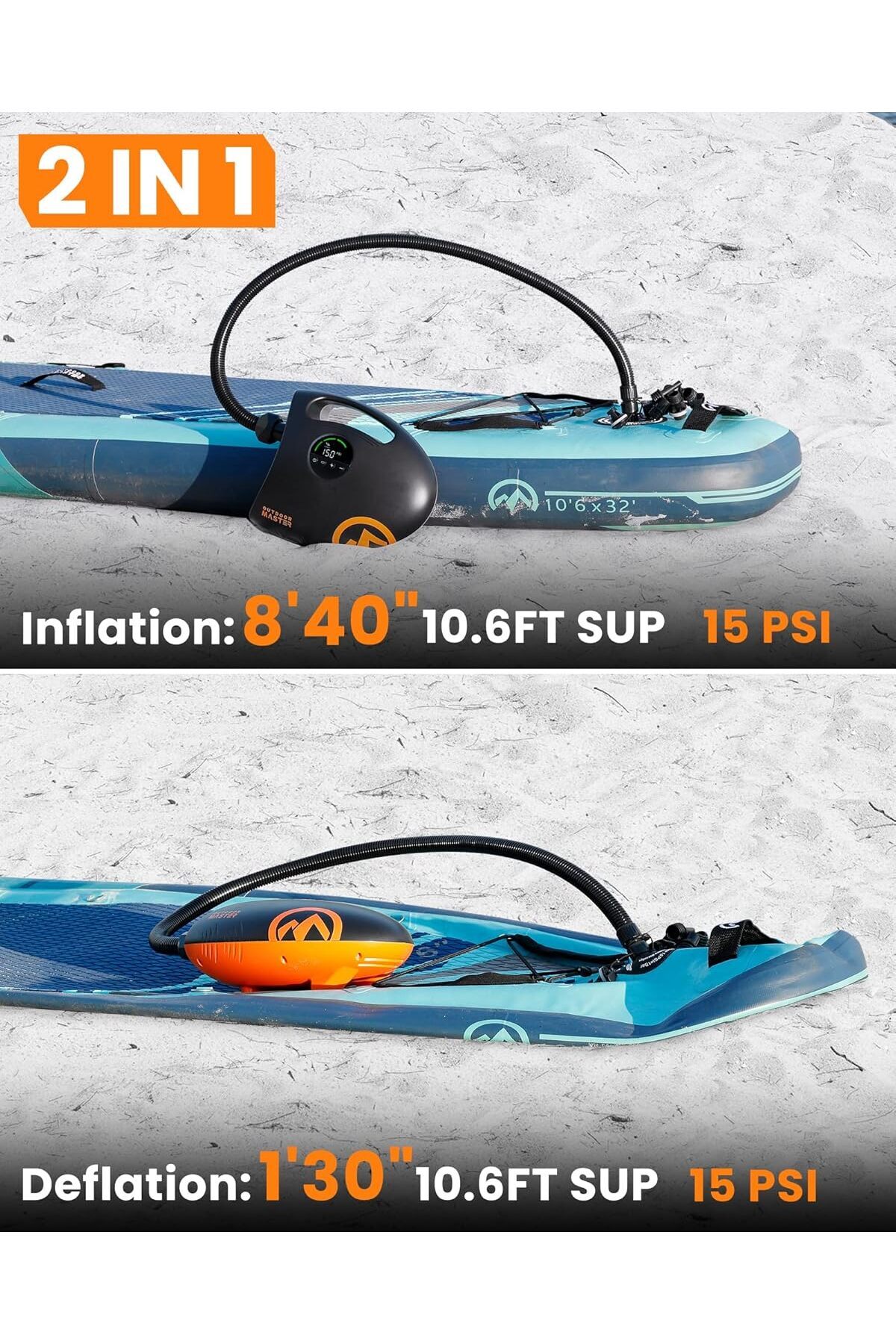 - 20 PSI basınç kapasitesiyle hızlı ve etkili bir şekilde şişirme işlemini gerçekleştirir, böylece su sporlarına daha fazla zaman ayırabilirsiniz.