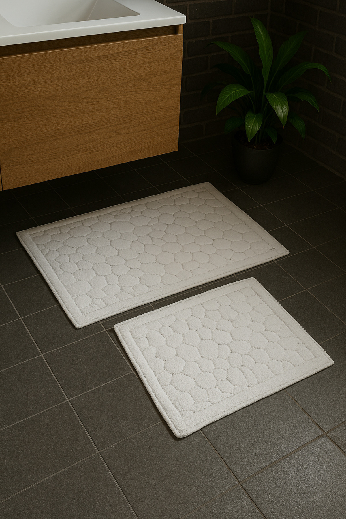 - İki parçadan oluşan set, hem banyo paspası hem de ekstra alan için uygunluk gösterir.