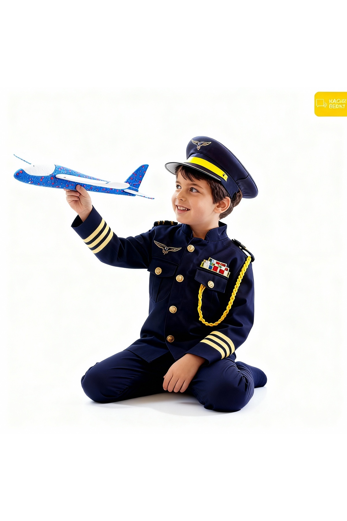 Çocuk Pilot Kostümü Hediye Seti – Pilot Elbisesi + Köpük Uçak Oyuncak
