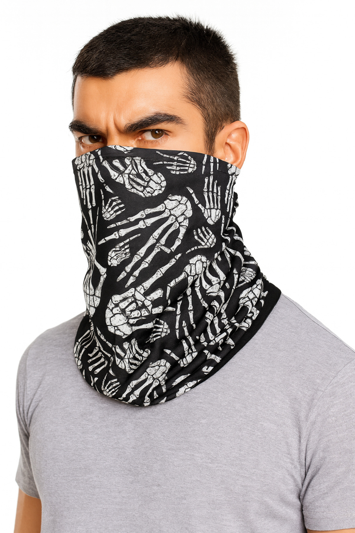 - Çok renkli tasarımı ile dikkat çeken desenli boyunluk maske, her kıyafetle uyum sağlayacak şık bir aksesuar olarak öne çıkar.