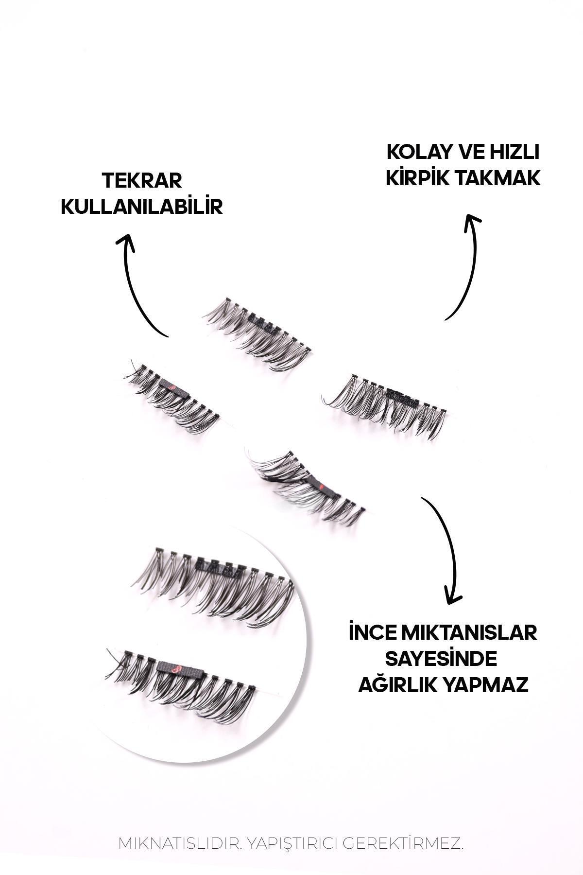 Mara Magnetic Eyes Mıknatıslı Kirpik Extra Yoğun Mikro Mıknatıslar sayesinde doğal görünümDayanıklı yapısı sayesinde uzun süreli kullanımUltra Hafif yapısı sayesinde günlük kullanım rahatlığıYapıştırıcı gerektirmeyen özelliği sayesinde kolay kullanım