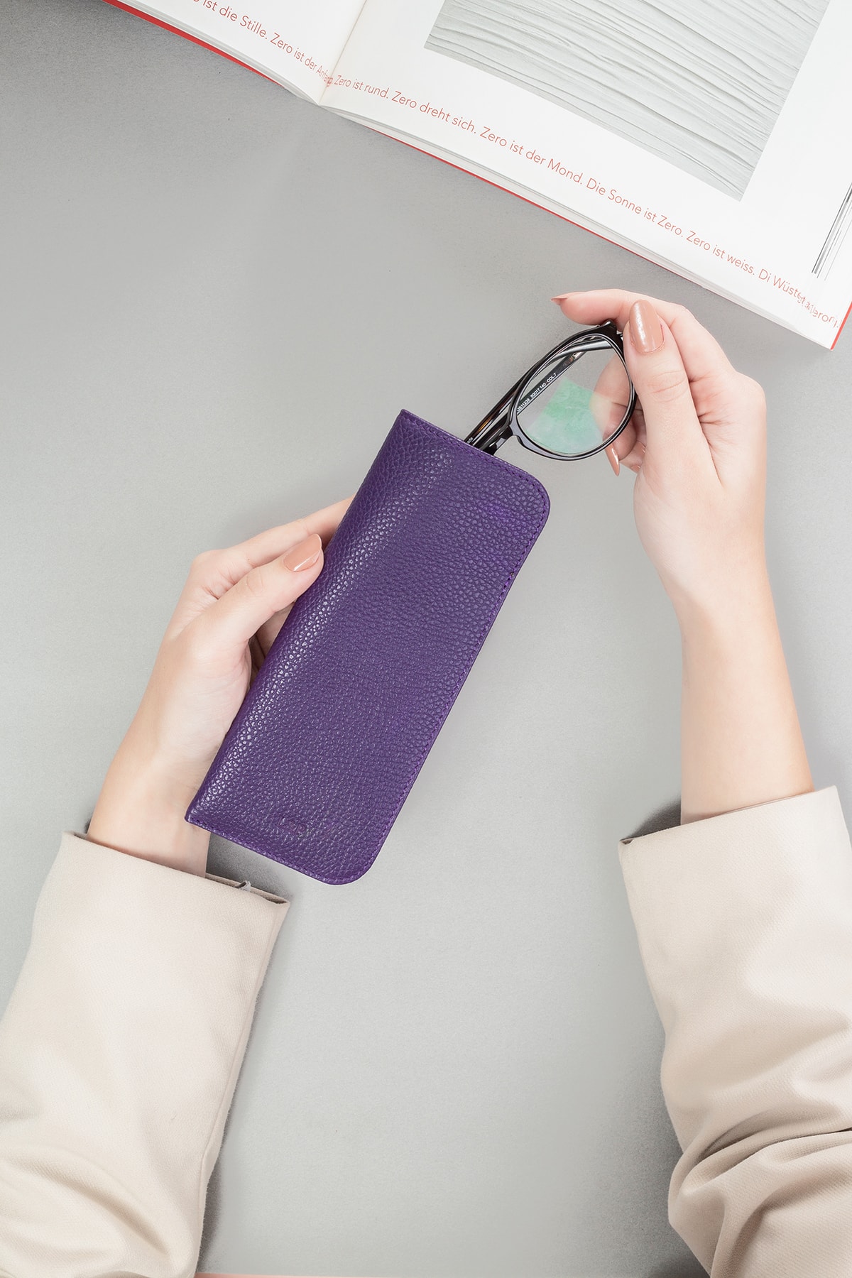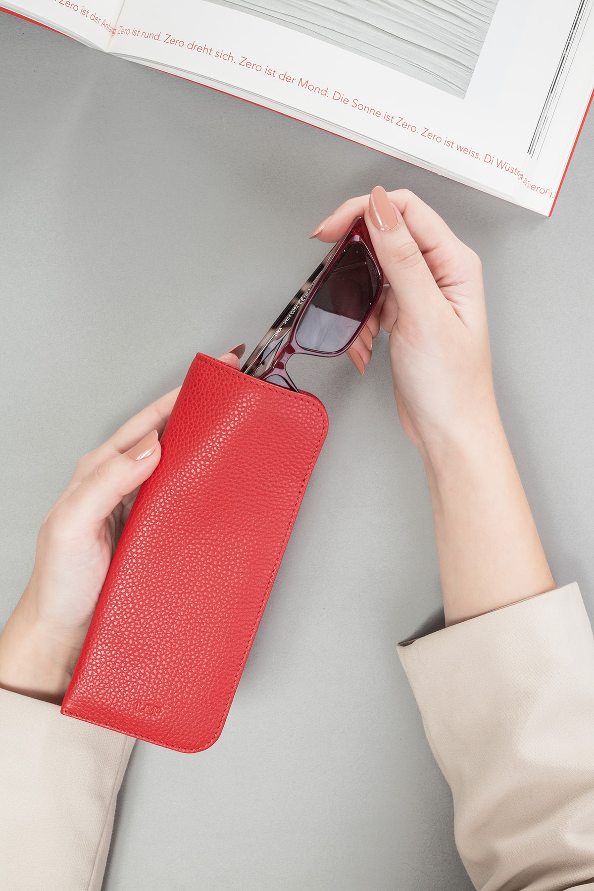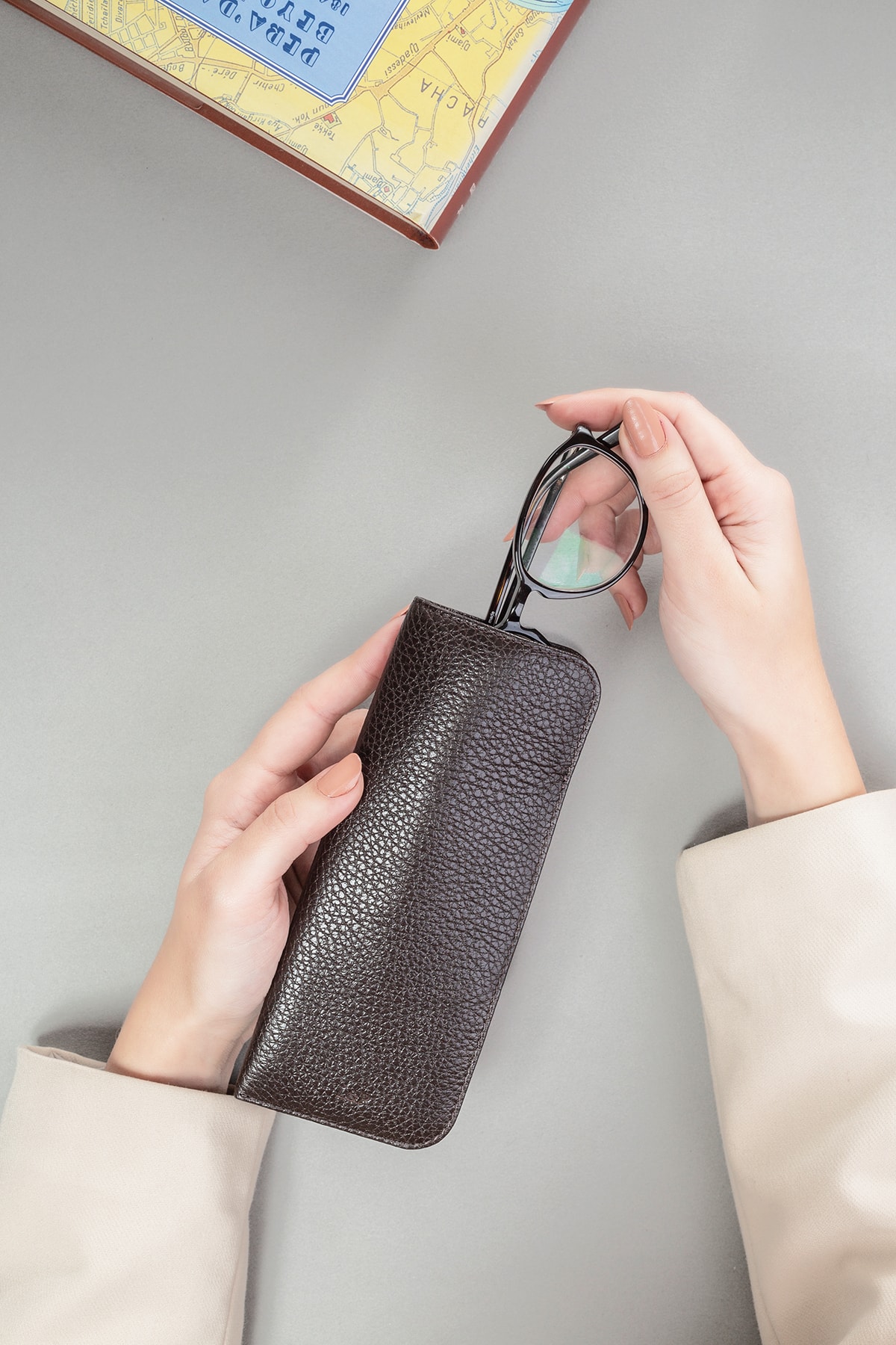 Zümrüt yeşili deri gözlük kılıfı, şık ve göz alıcı bir dokunuşla gözlüklerinizi korur