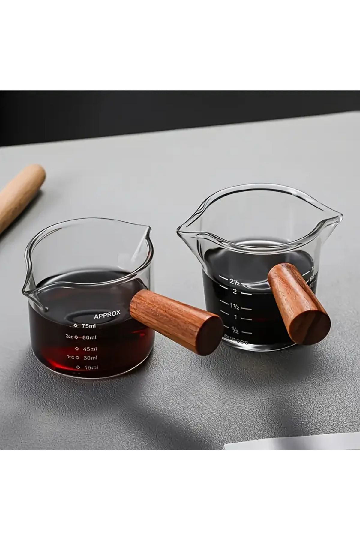 75 ml Ahşap saplı Isıya dayanıklı Espresso ölçegi ve Sutluk Bardağı,beyaz sosluk