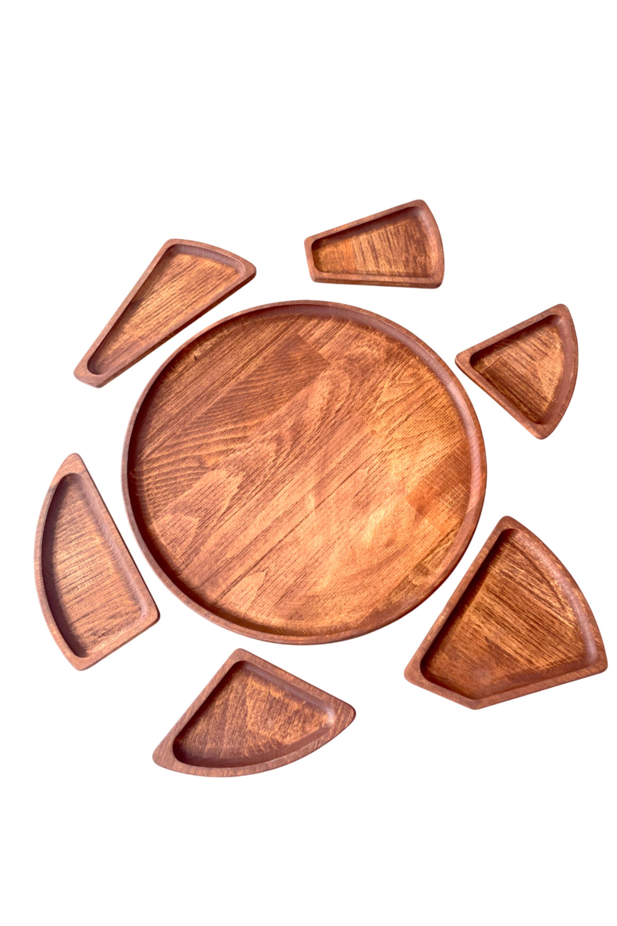 - 7 parçadan oluşan set, çeşitli boyutlarda çerezlikler ve sunum tepsileri içerir.