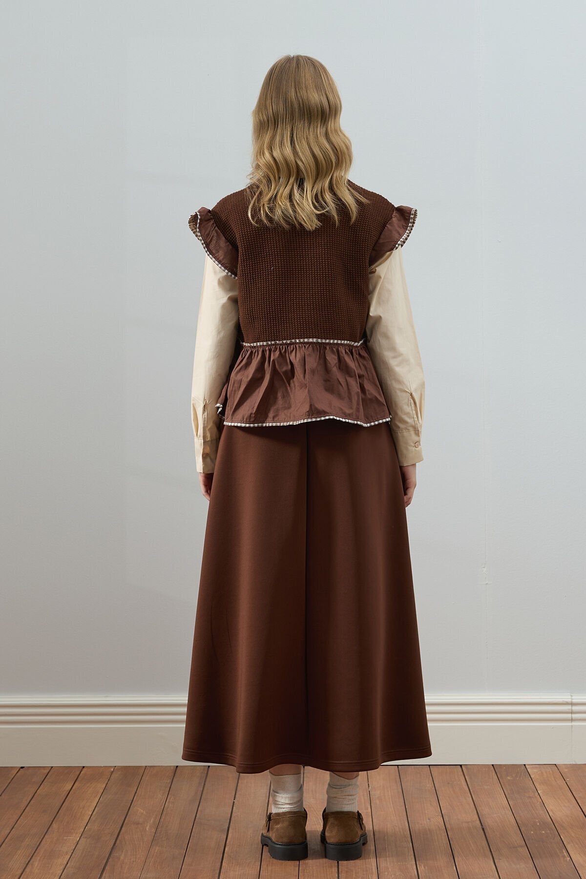 • Bu fırfırlı triko yelek, hem şık hem de rahat bir görünüm sunar.