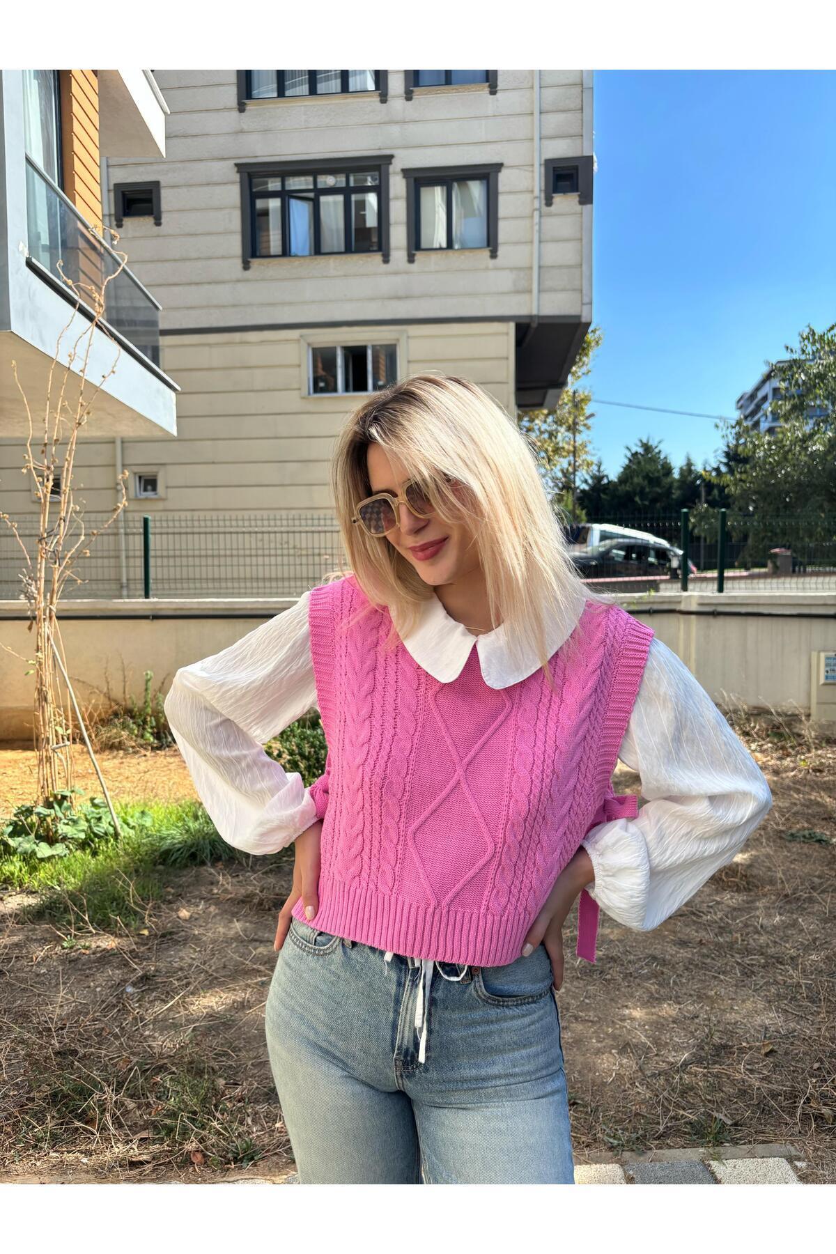 - Bisiklet yaka tipi, sade ve şık bir boyun hattı oluşturur.