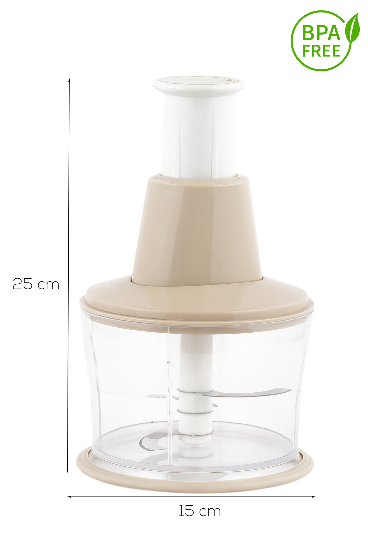 Boyutlar : 15 x 15 x 255 cm Kapasite : 1000 ml Renk Seçenekleri : Kapicino Hızlı ve Kolay Doğrama : 3 Bıçaklı sayesinde sadece üstten bastırarak yiyeceklerinizi hızlı ve kolay bir şekilde doğrayın.