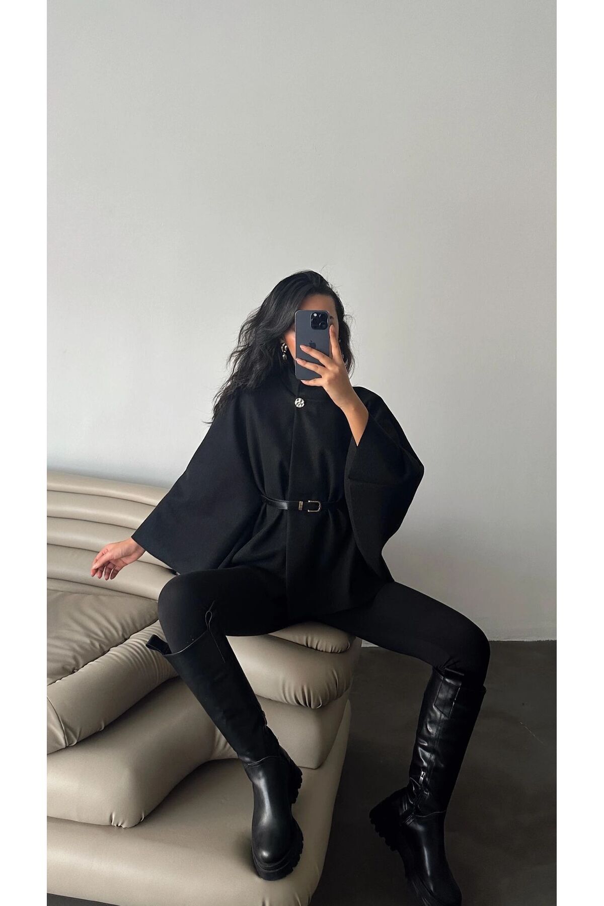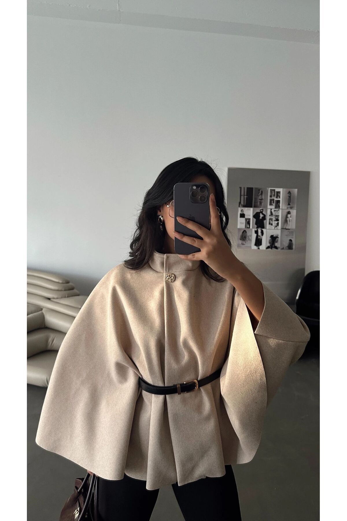 - Kadın ve kızlar için ideal, şık ve rahat bir tercih olan kaşe panço, günlük kullanım için mükemmel bir seçenektir.