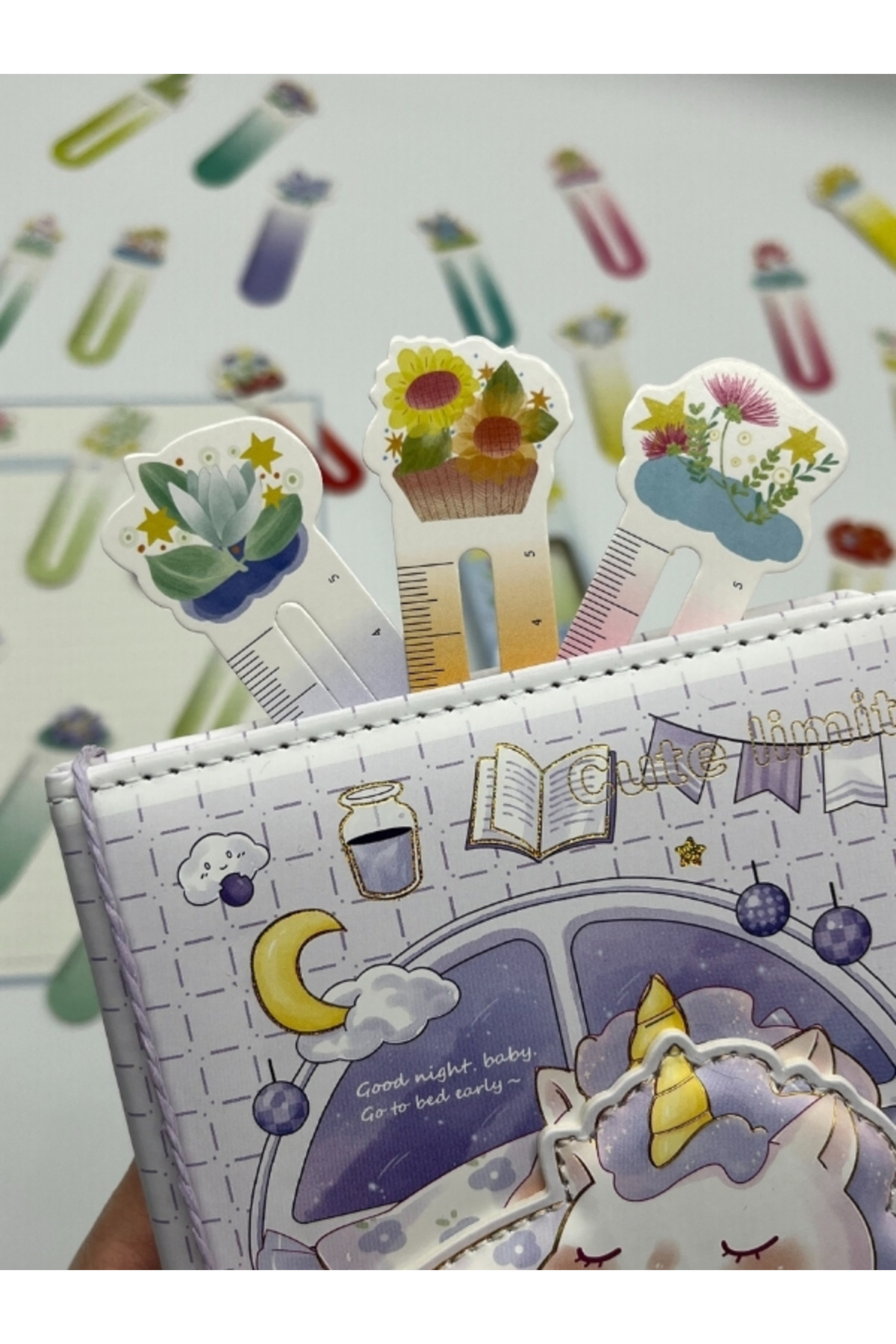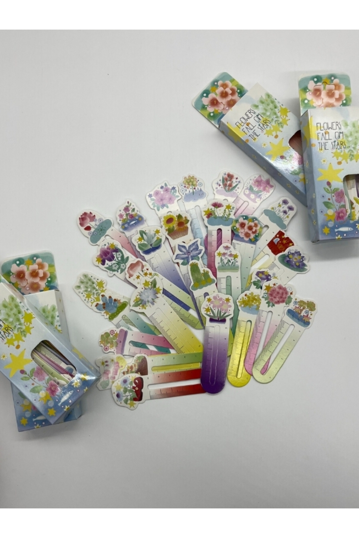 30 lu Çiçek Desenli Cetvelli Kitap Ayracı Flowers Fall On The Stars/Ataş/Yer İmi