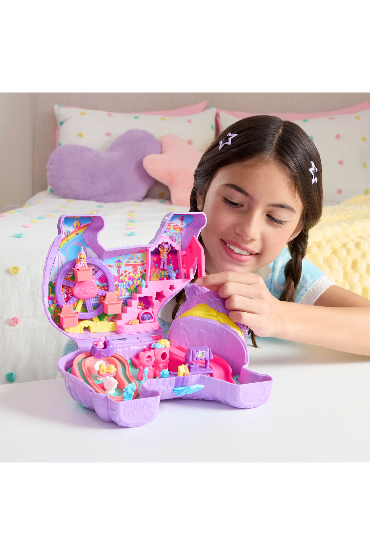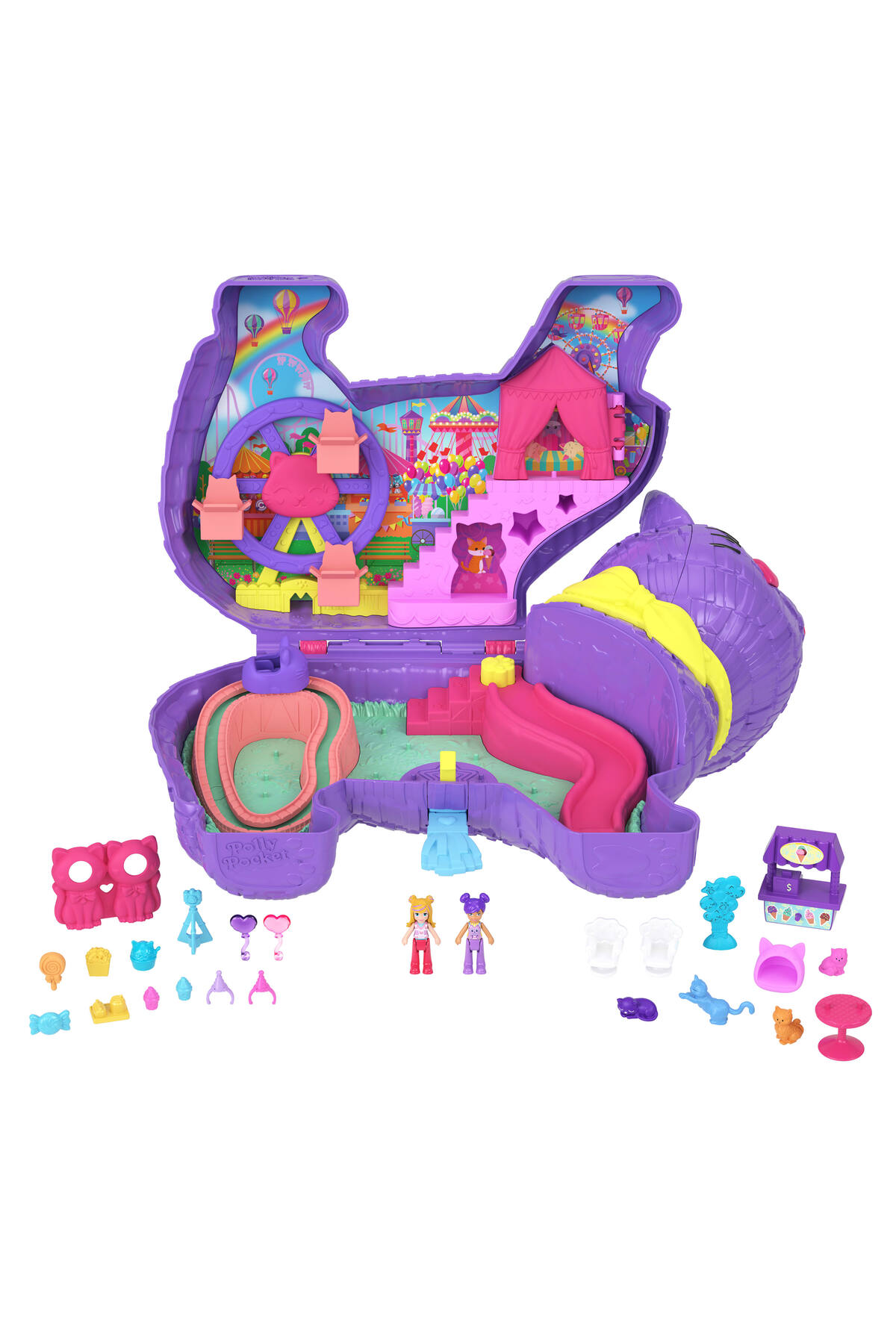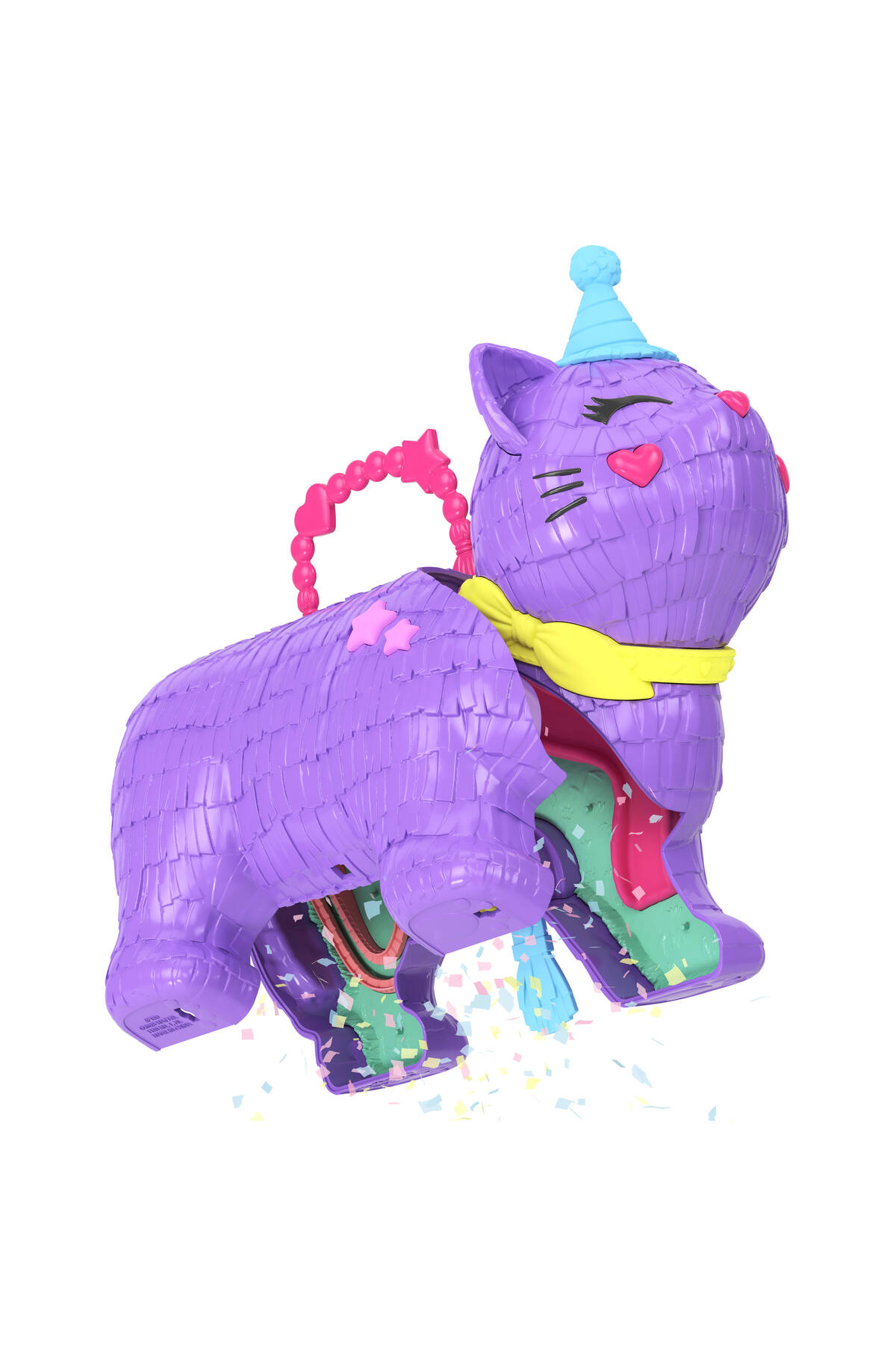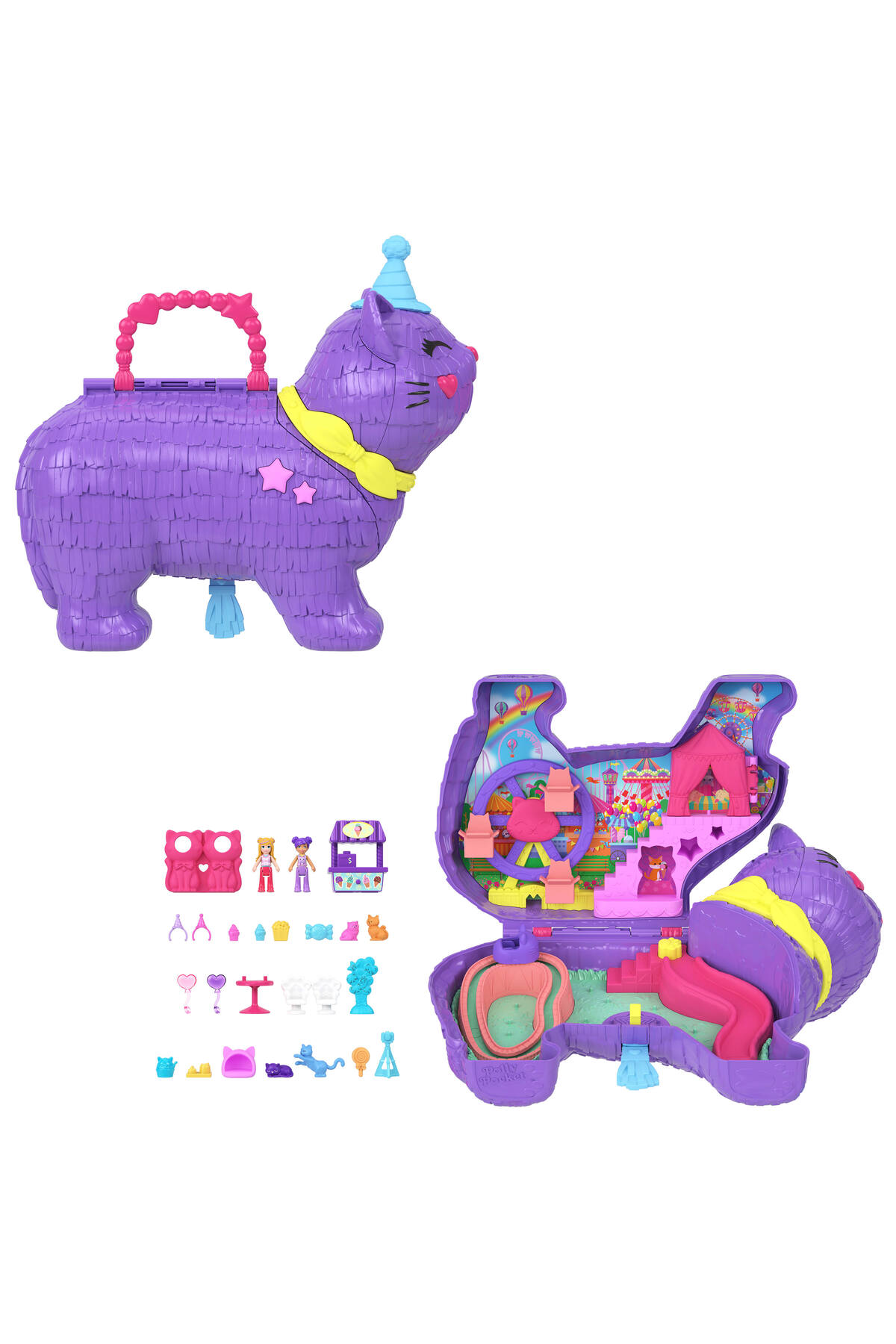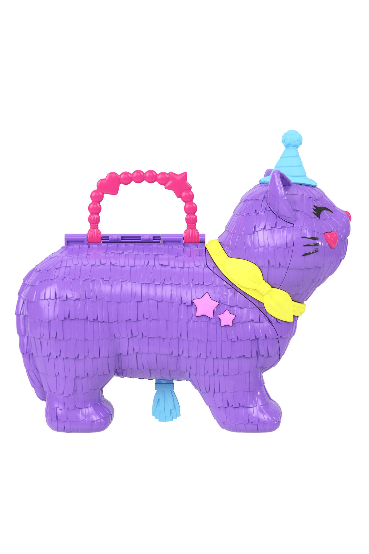 Polly Pocket, Parti Kediciği pinyatalı oyun setiyle partiye hazırlanıyor! 2 mikro bebek ve kedicik figürleri dahil 23 sürpriz aksesuar ile kutlamalara katılın. İpi çekerek oyun setini açtığınızda sizi konfetiler ve aksesuar paketleri karşılar. Sürpriz! Sevimli kedicik şeklindeki pinyatayı açtığınızda kutlamalar başlar. Bebekler dönme dolaba binerek manzarayı izleyebilir, çadırın içinde oyunlar oynayabilir, hız trenine binebilir ve daha pek çok şey yapabilir! Polly Pocket ve dostlarıyla parti eğlencesi hiç bitmez! Özellikle lunaparkları, kedileri ve sürprizleri seven 4 yaş ve üzeri çocuklar için idealdir. Renkler ve süslemeler çeşitlilik gösterebilir.
