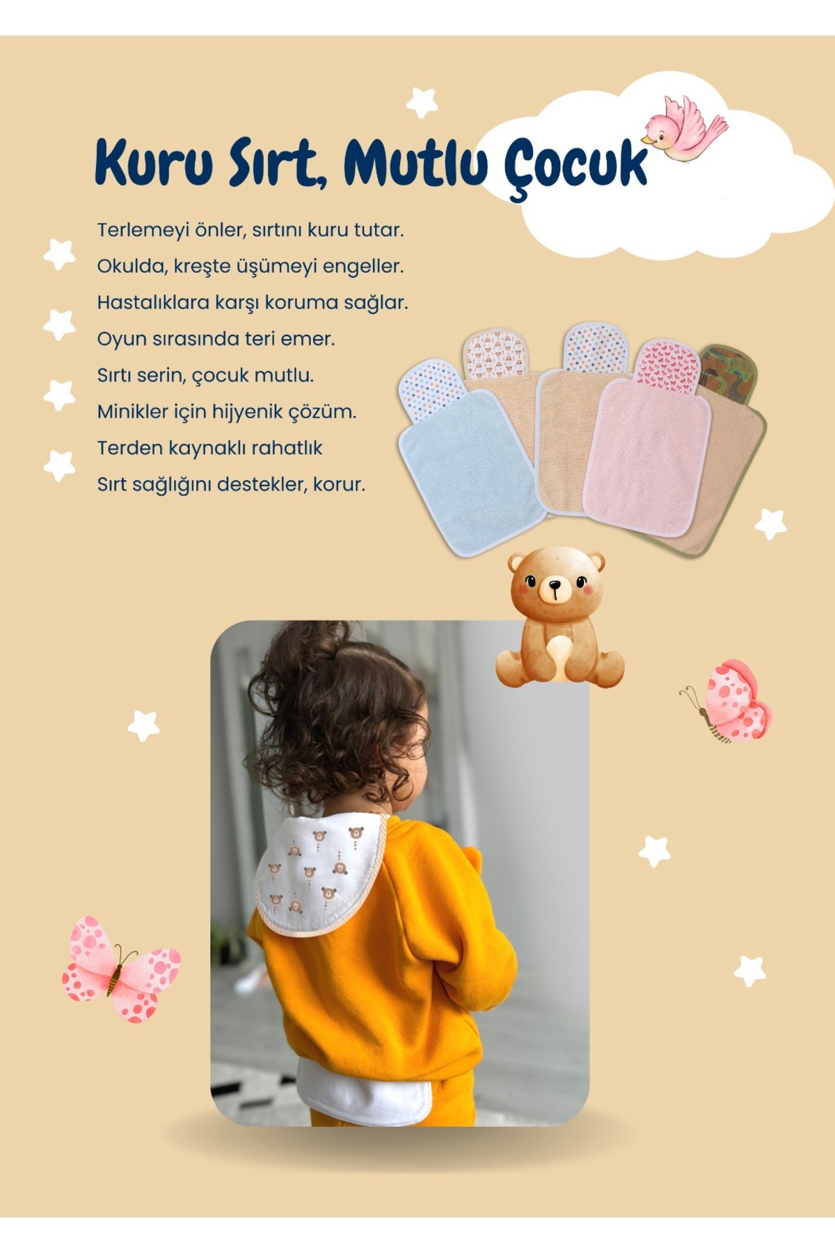 NEW BABYy | 4-6 YAŞ Nefes Alan Sırt Bezi %100 Pamuklu, Kreş ve Oyun Zamanı Havlu Sırtlık