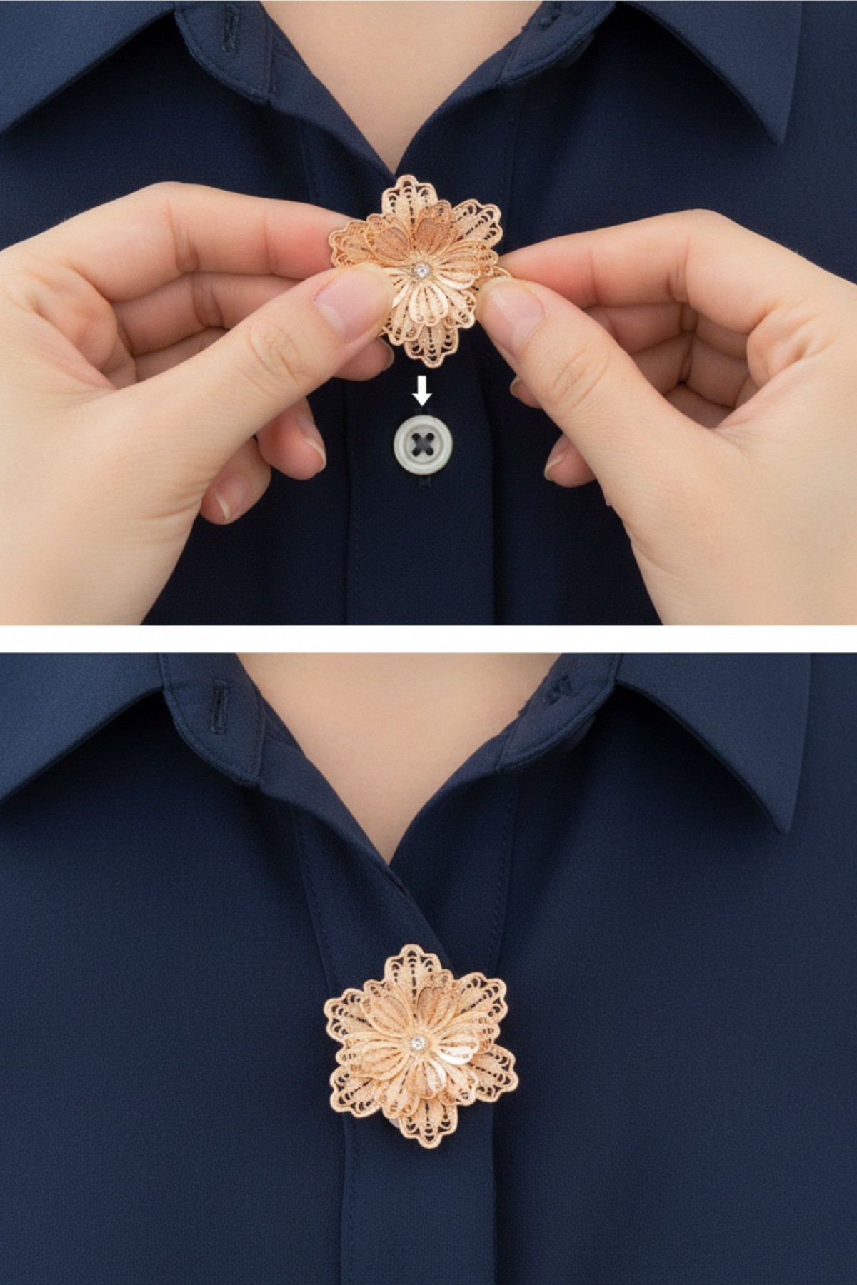 Çok amaçlı kullanım: broş, yaka iğnesi veya kol düğmesi alternatifi