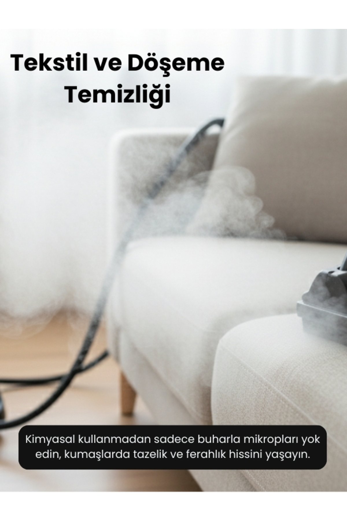 Stella 5 Bar/ 2000W / Çok Fonksiyonlu Buharlı Temizleyici + Ütü Başlığı ve Eldiven Hediyeli - Siyah