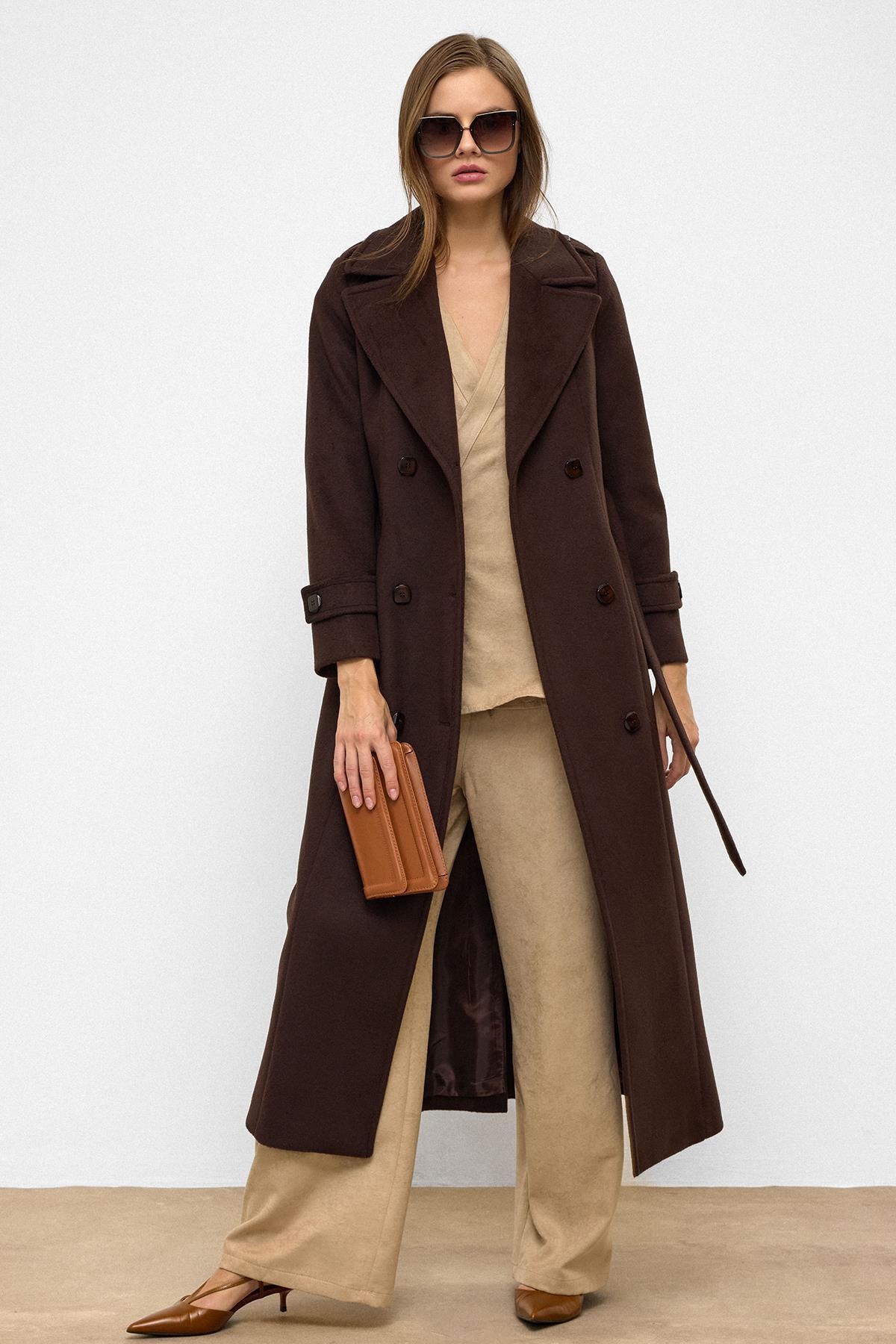 Apolet Detaylı Kruvaze Uzun Boy Kaban KAHVE 3056