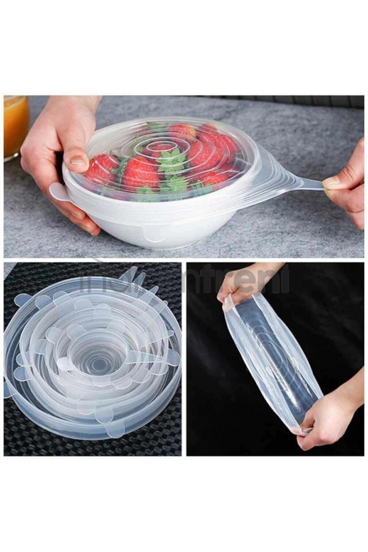 Çok amaçlı slikon kapak seti Streç folyoya artık ihtiyacınız yok Birbirinden farklı 6 boya sahip olan her boy tencere ve tabaklarınıza esnek yapısı sayesinde kolaylıkla uyum sağlar Kaplarınızı sıkı bir şekilde vakumlayıp kapatacağı için hava sızdırmalarına engel olur, bu sayede yemekleriniz kolay kolay bozulmaz