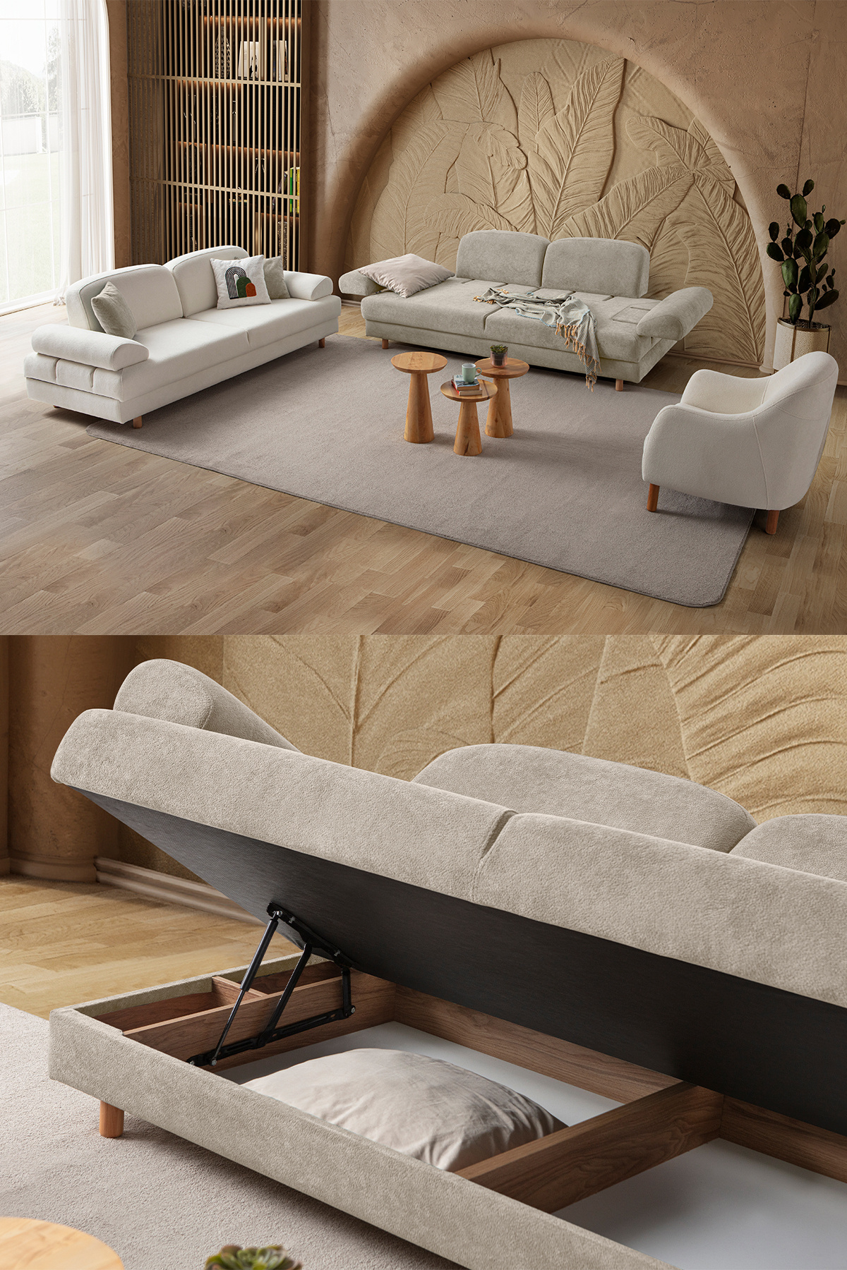 Aries Yataklı Sandıklı Koltuk Takımı 3+3+1 Sütlü Kahve