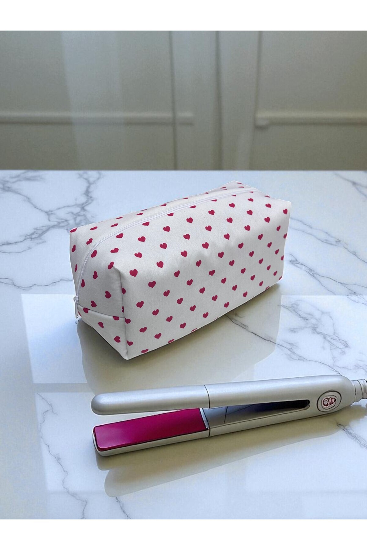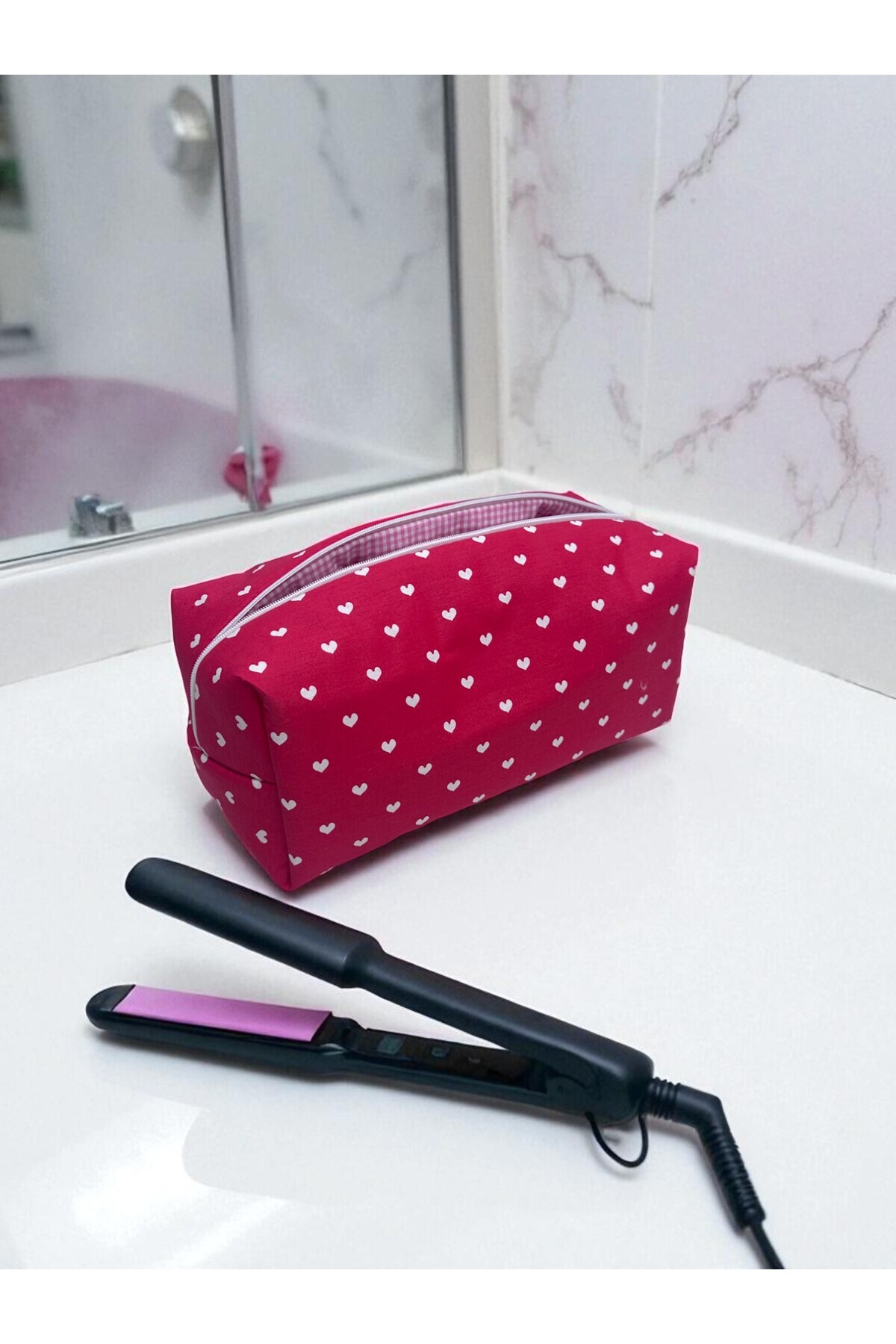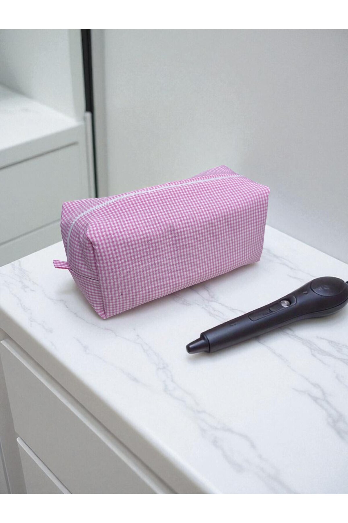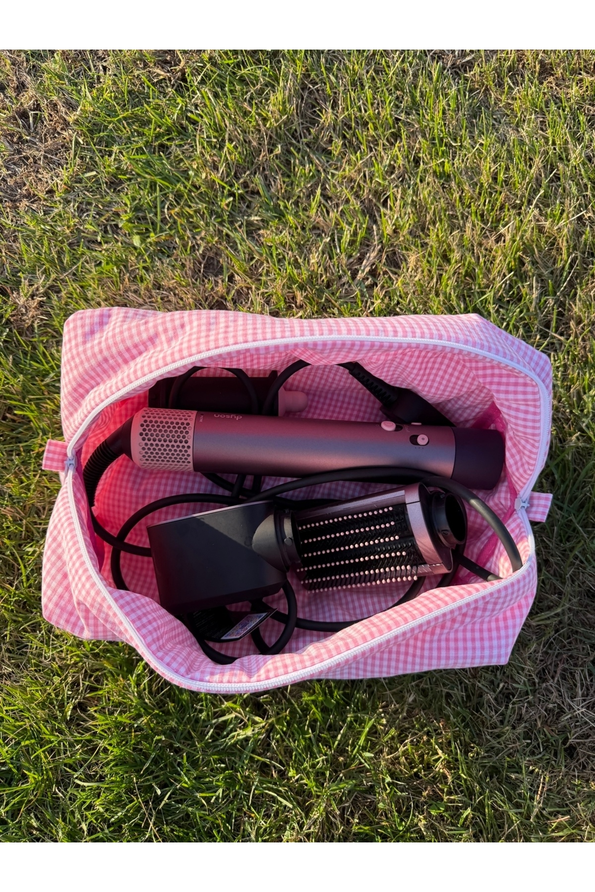 Şıklığı ve işlevselliği bir araya getiren Pembe Pötikare Desenli Saç Şekillendirici Çantası - Büyük Boy, saç düzleştirici, maşa, fön makinesi ve diğer saç şekillendirme cihazlarını güvenli ve düzenli bir şekilde saklamak için ideal bir çözümdür.
