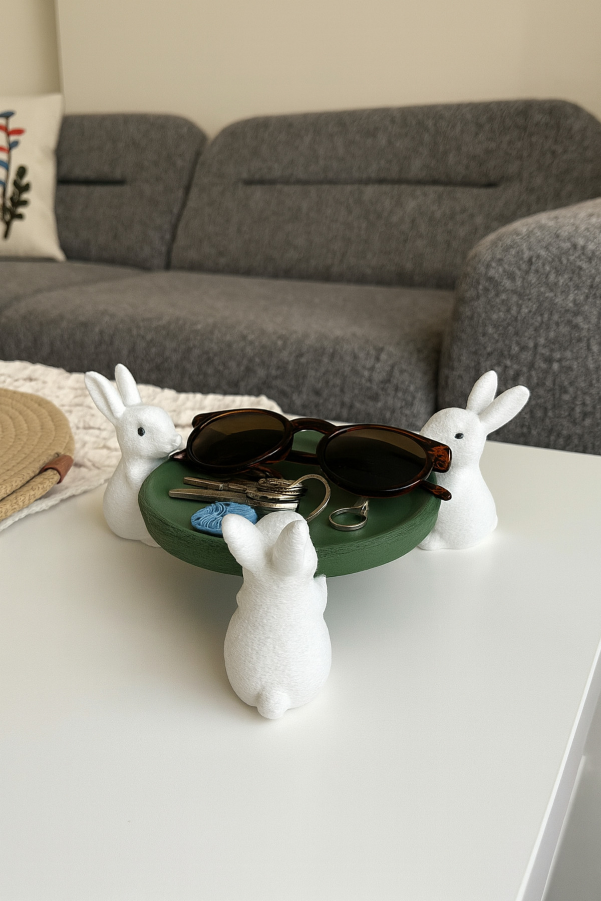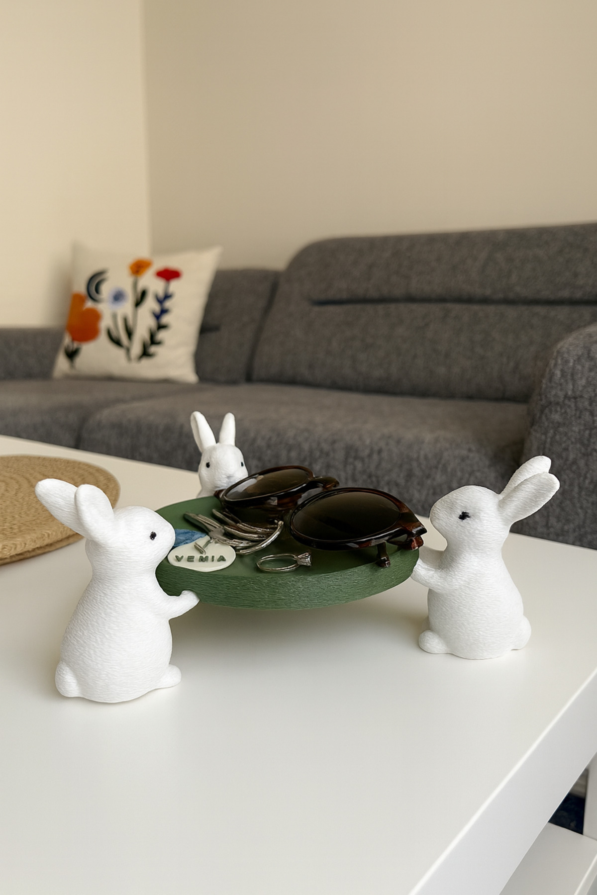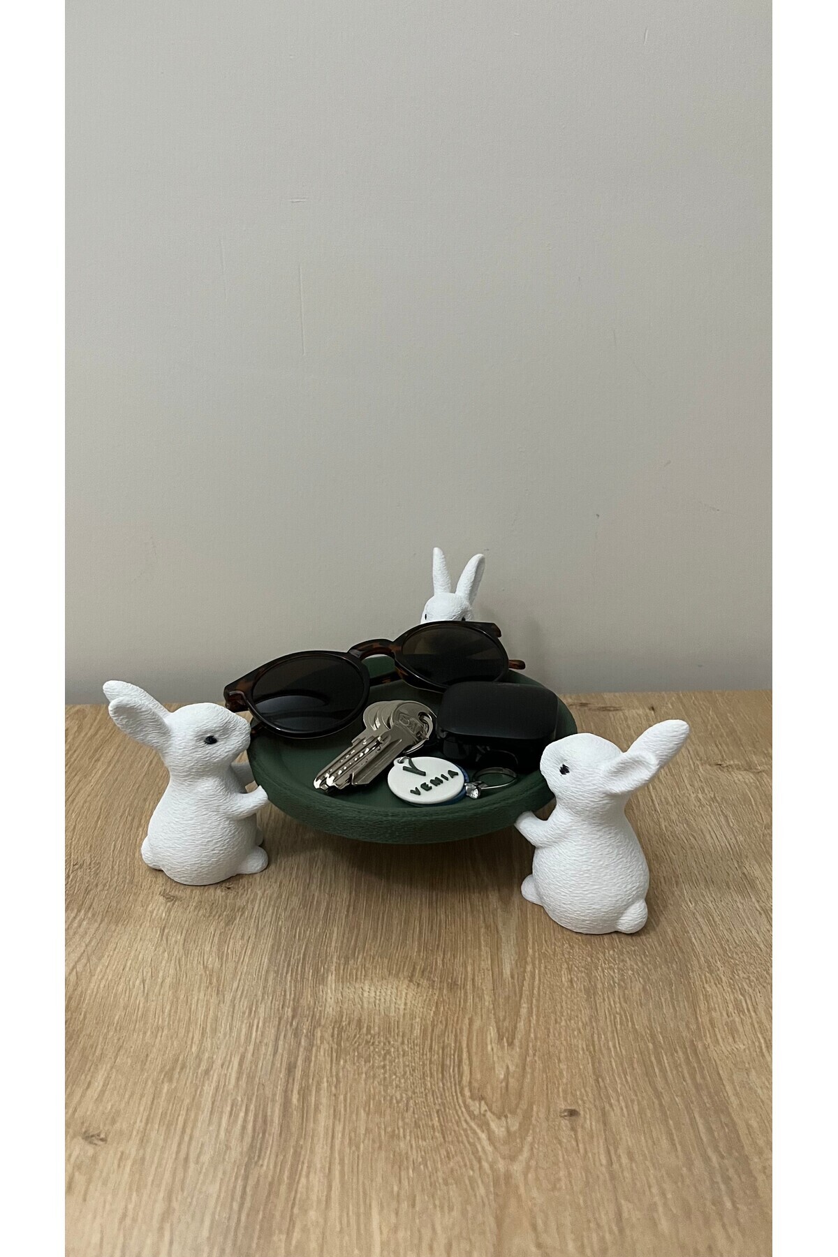 Tavşanlı Dekoratif Mini Anahtarlık & Takı Tabağı – Masa Üstü Organizer