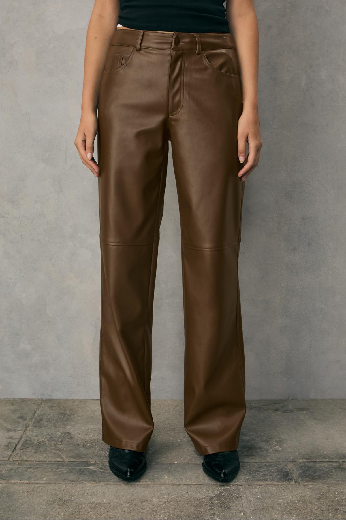 • Suni deri kumaştan üretilmiş uzun pantolon.