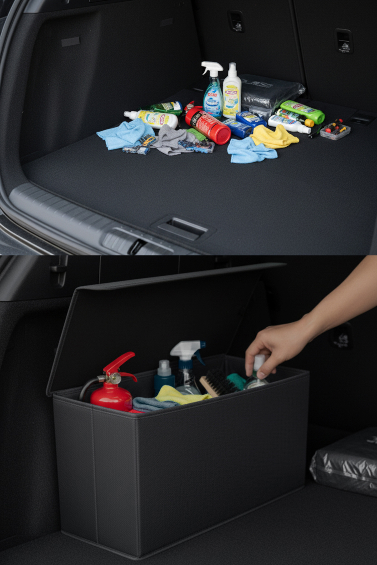 Araba Bagaj Çantası – Oto Bagaj Organizer Kapaklı Cırtlı Düzenleyici 50x25x15