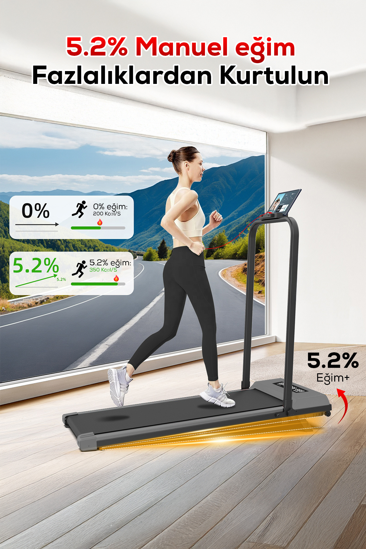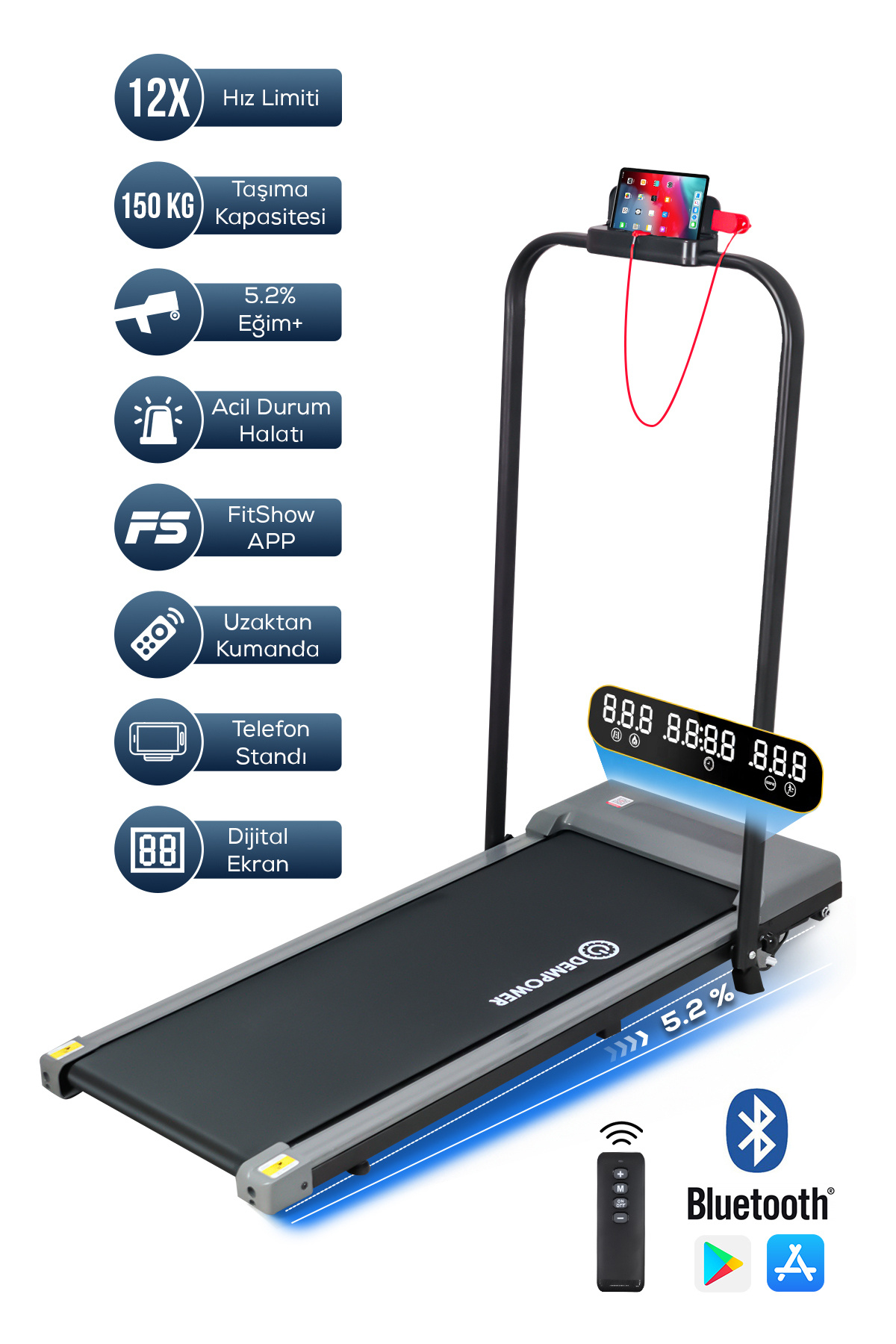 150KG Taşıma Kapasiteli, 12KM/H, Manuel Eğimli, Bluetoothlu, LCD Ekranlı Yürüyüş Ve Koşu Bandı