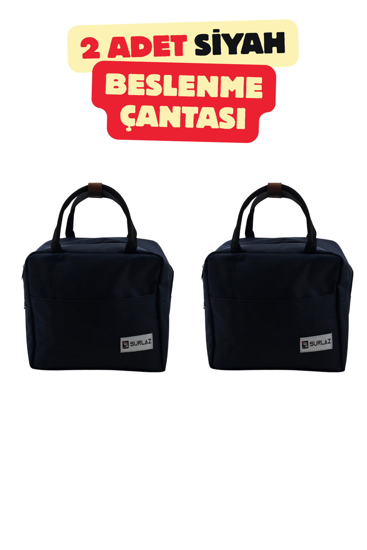 2 Adet Siyah Termal Beslenme Çantası Ekonomik Set Okul, Ofis, Kamp, Piknik İçin İdeal 22X13X25 Cm