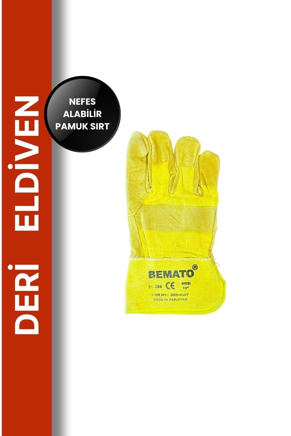 Sarı Deri İş Eldiveni EN 388 Belgeli Mekanik Koruma