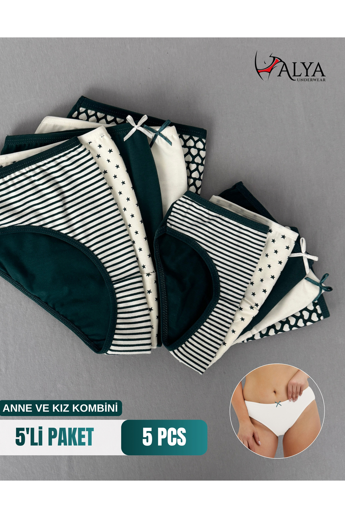 - Anneler ve kızları için özel olarak tasarlanmış, günlük kullanıma uygun pamuklu slip külotlar.