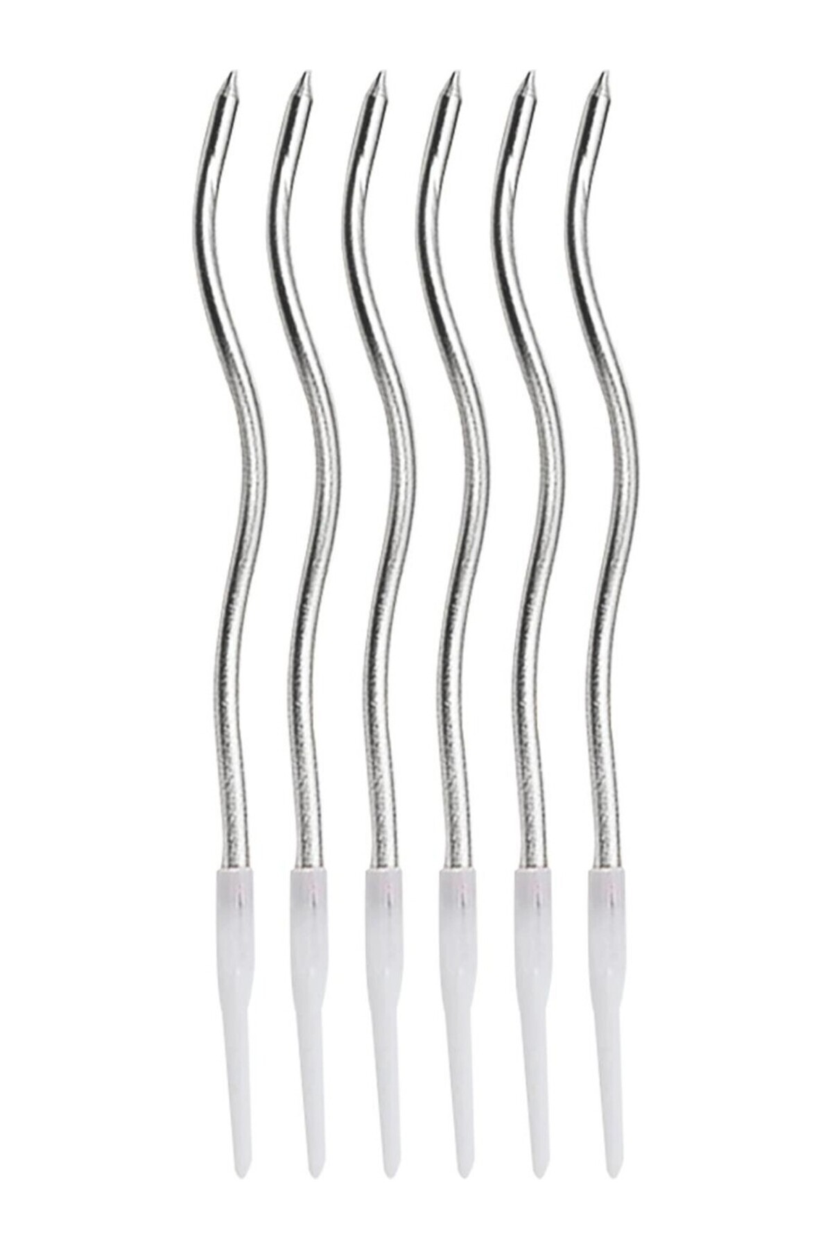 Kıvrımlı Gümüş Mum Pasta Mumu Spiral Kıvrık Mum 6'Lı