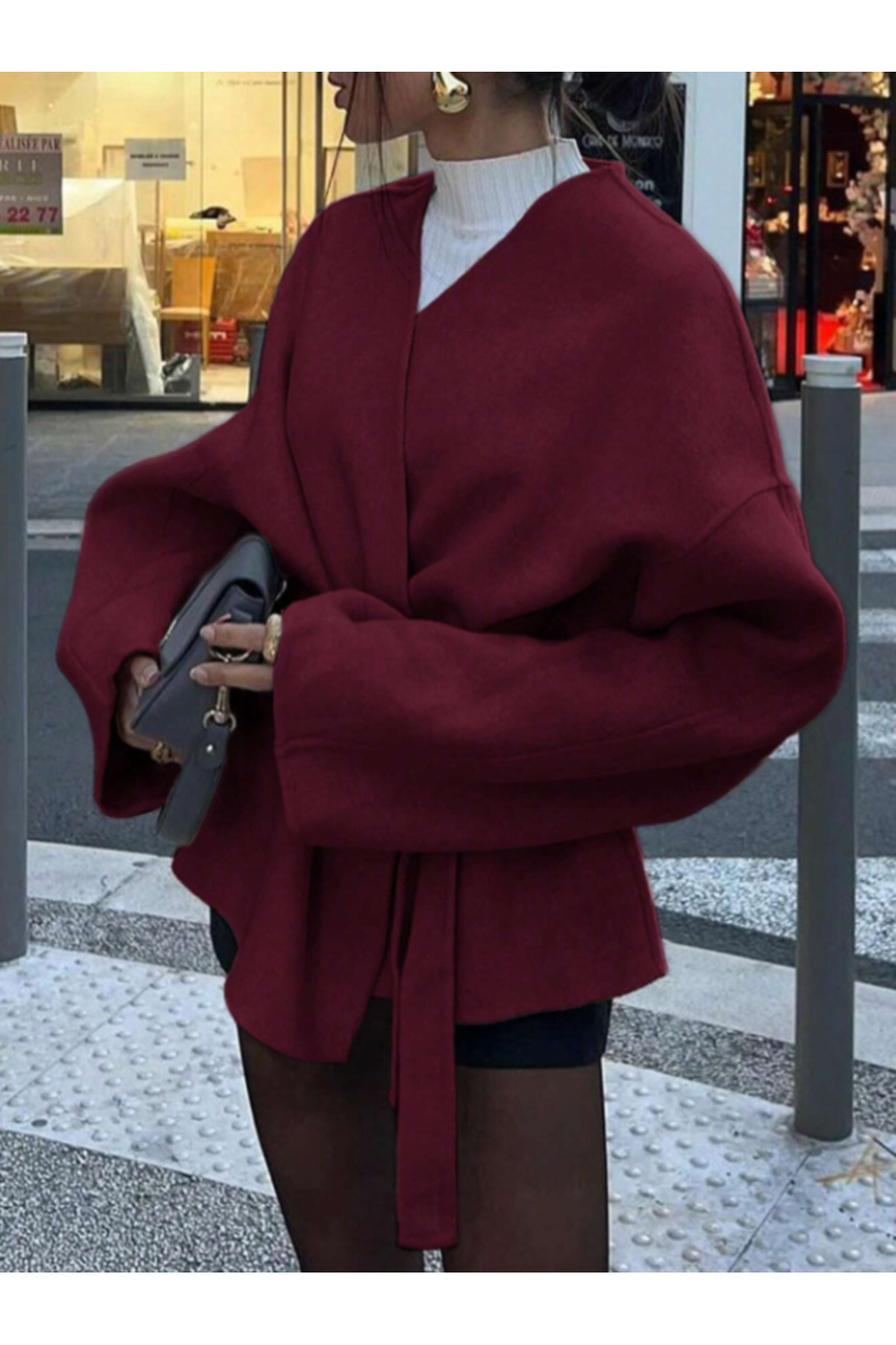- Yaka tipi, silueti tamamlayarak zarif bir görünüm oluşturur.