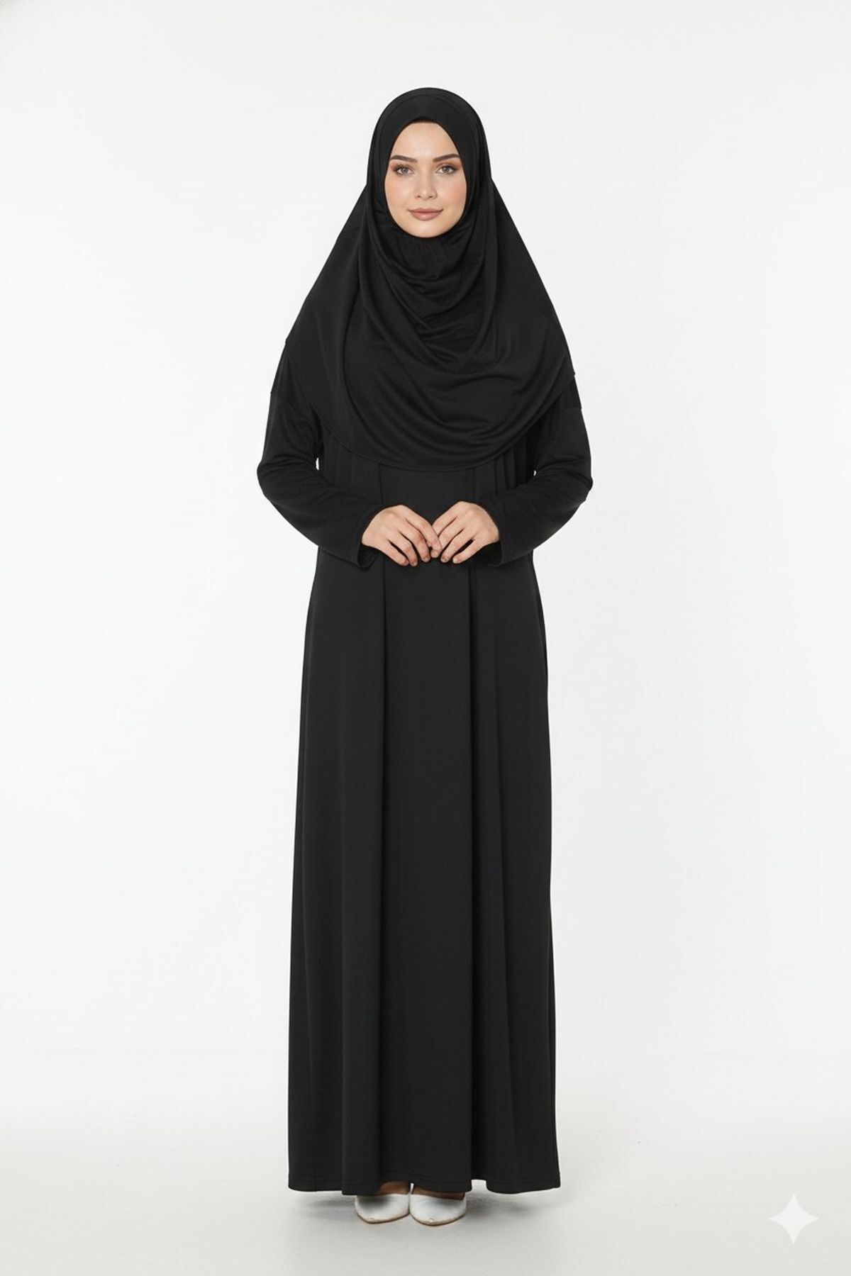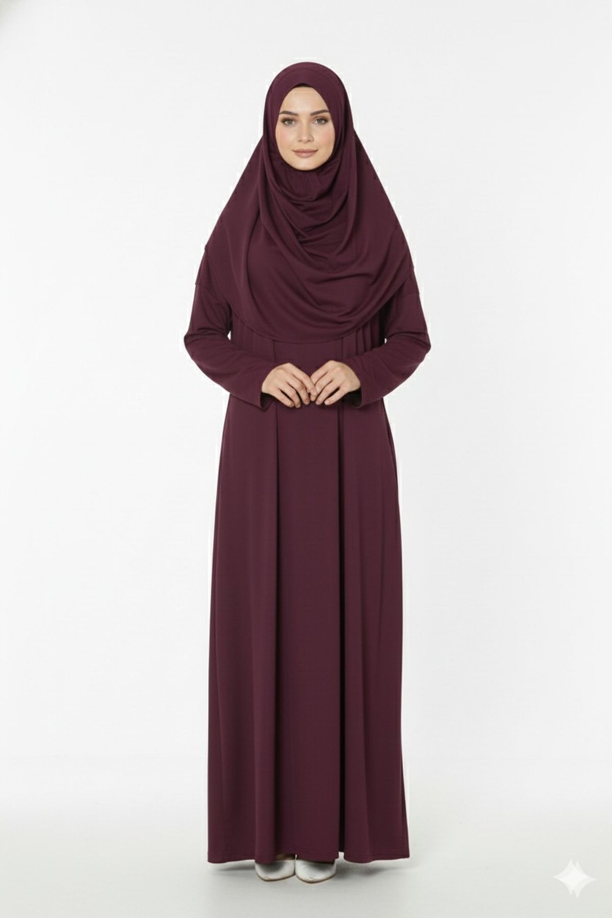 - Rahat ve şık tasarımıyla günlük kullanım için ideal, kolay giyilebilen başörtülü tek parça namaz elbisesi.