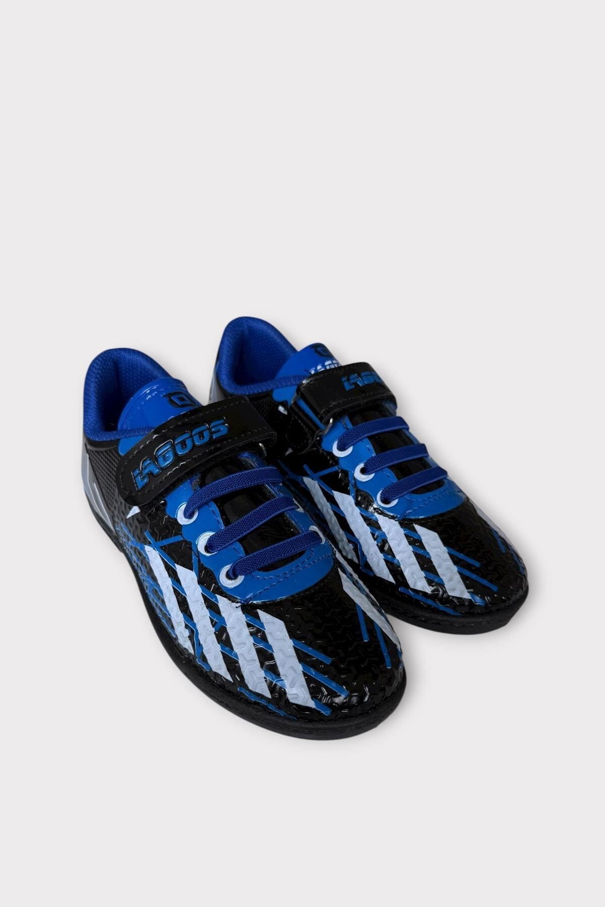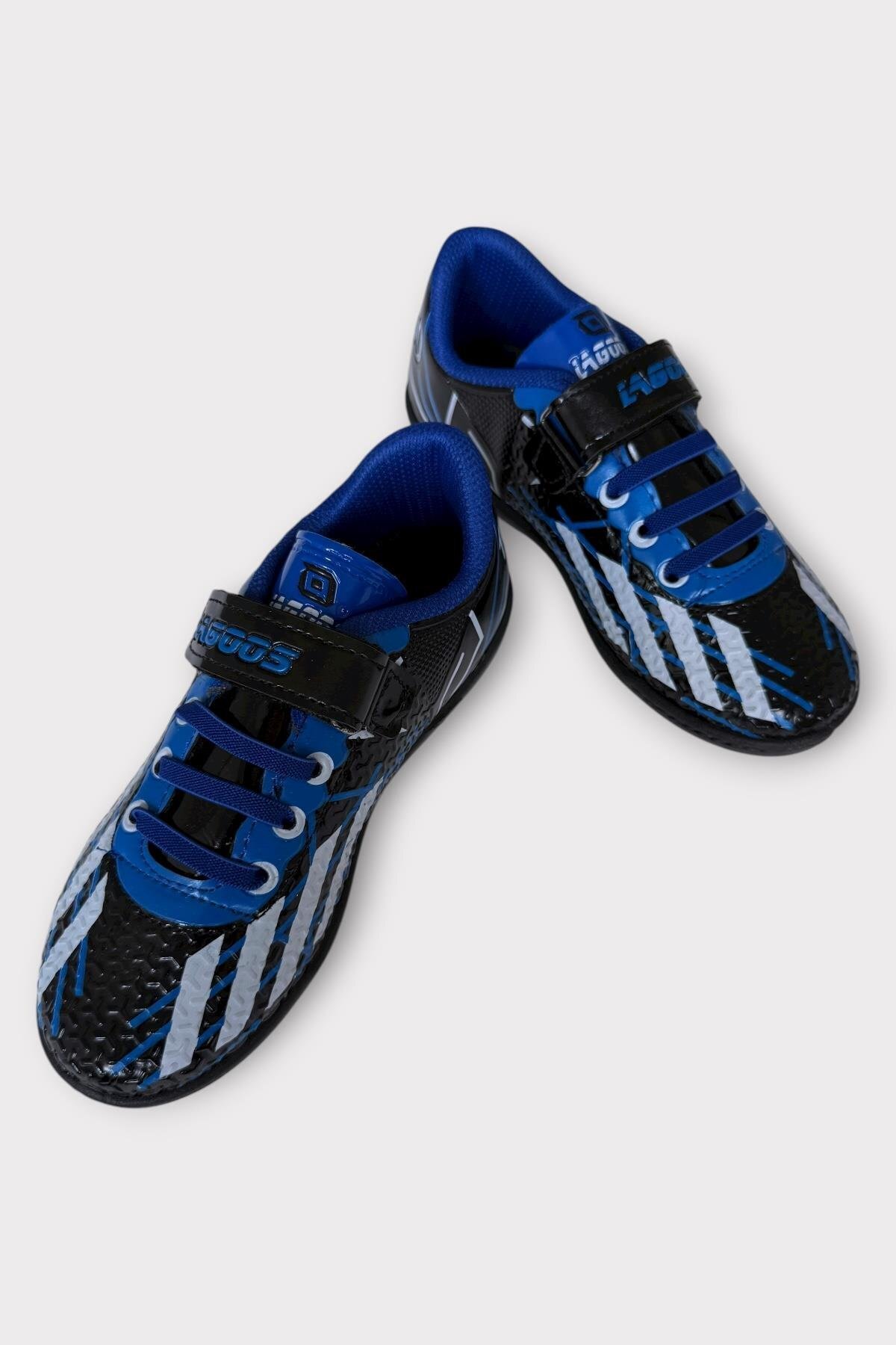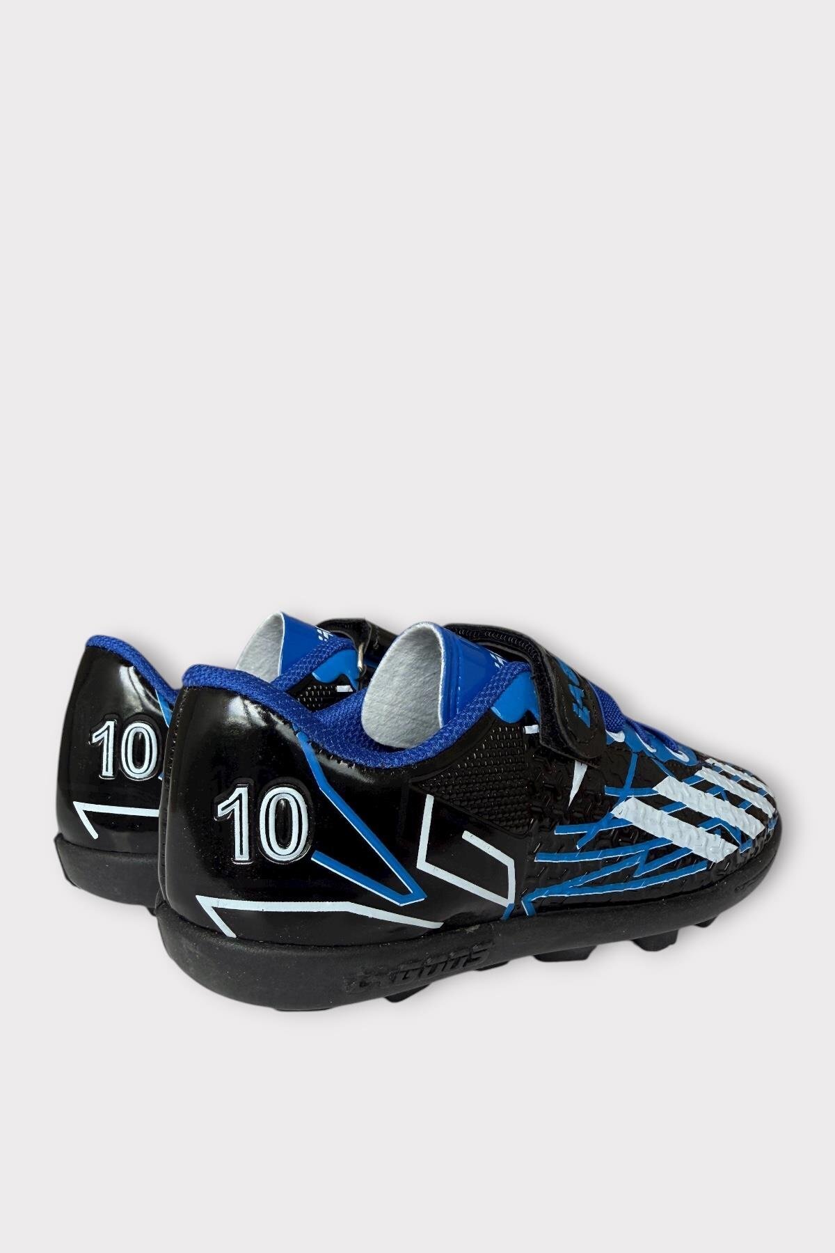 Çocuk Cırtlı Bantlı Bağcıklı Krampon Futbol Halı Saha Ayakkabısı MAVİ - SİYAH