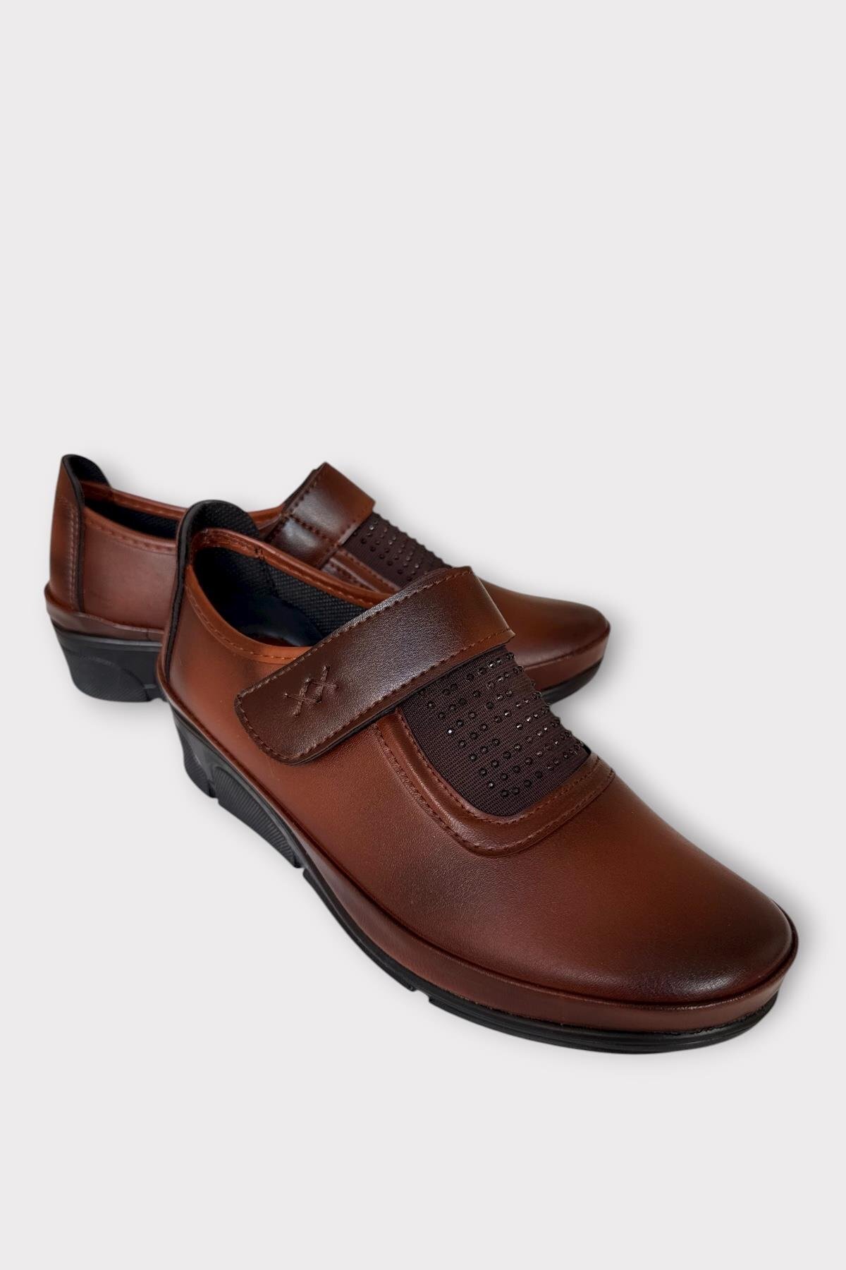Cırtlı Ortopedik Anne Kadın Casual Ayakkabı TABA - GÜMÜŞ