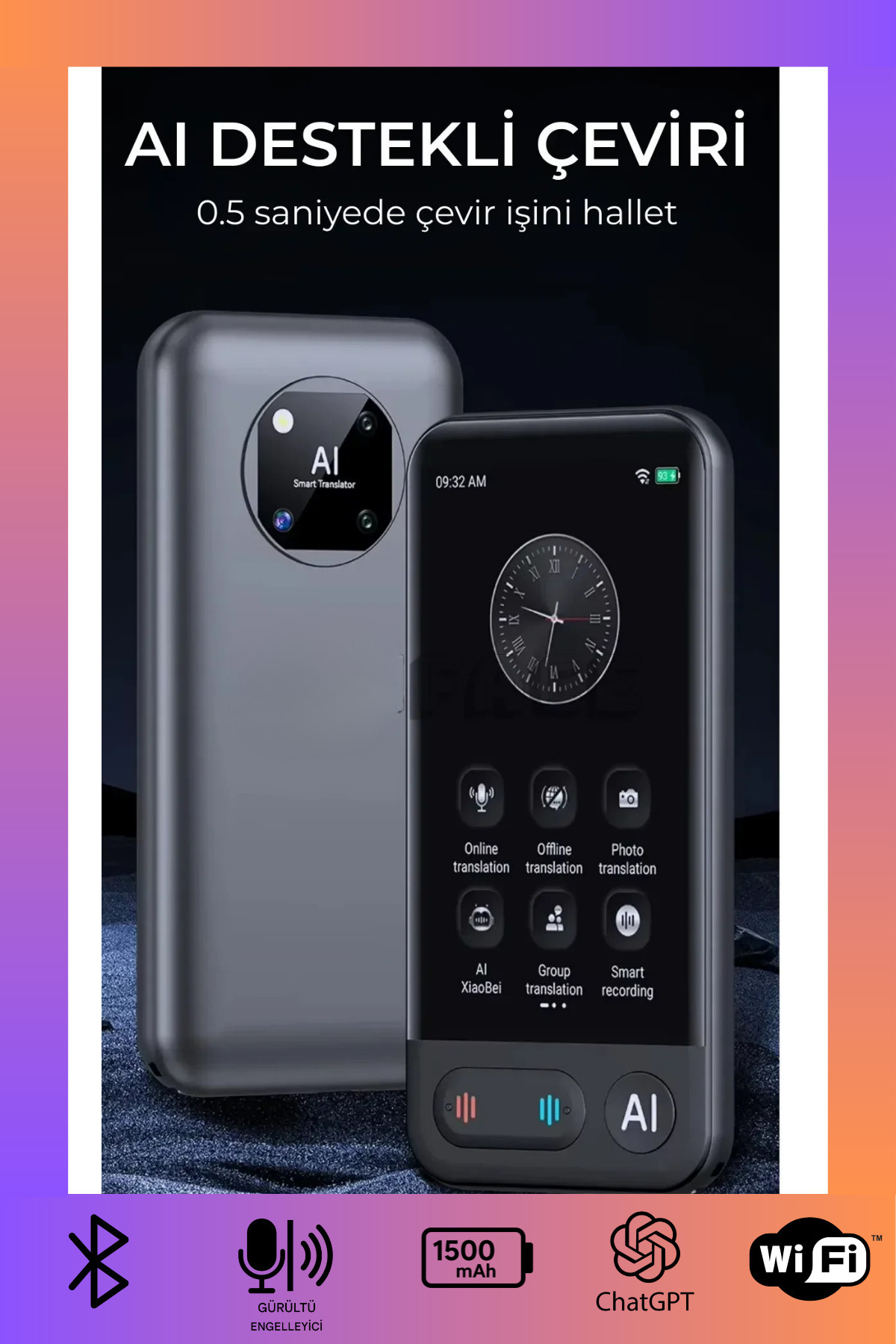 Ai Destekli 139 Dil Çeviri Cihazı – 0.5 Saniyede Anında Çeviri, Fotoğraf & Sesli Çeviri, ChatGPT