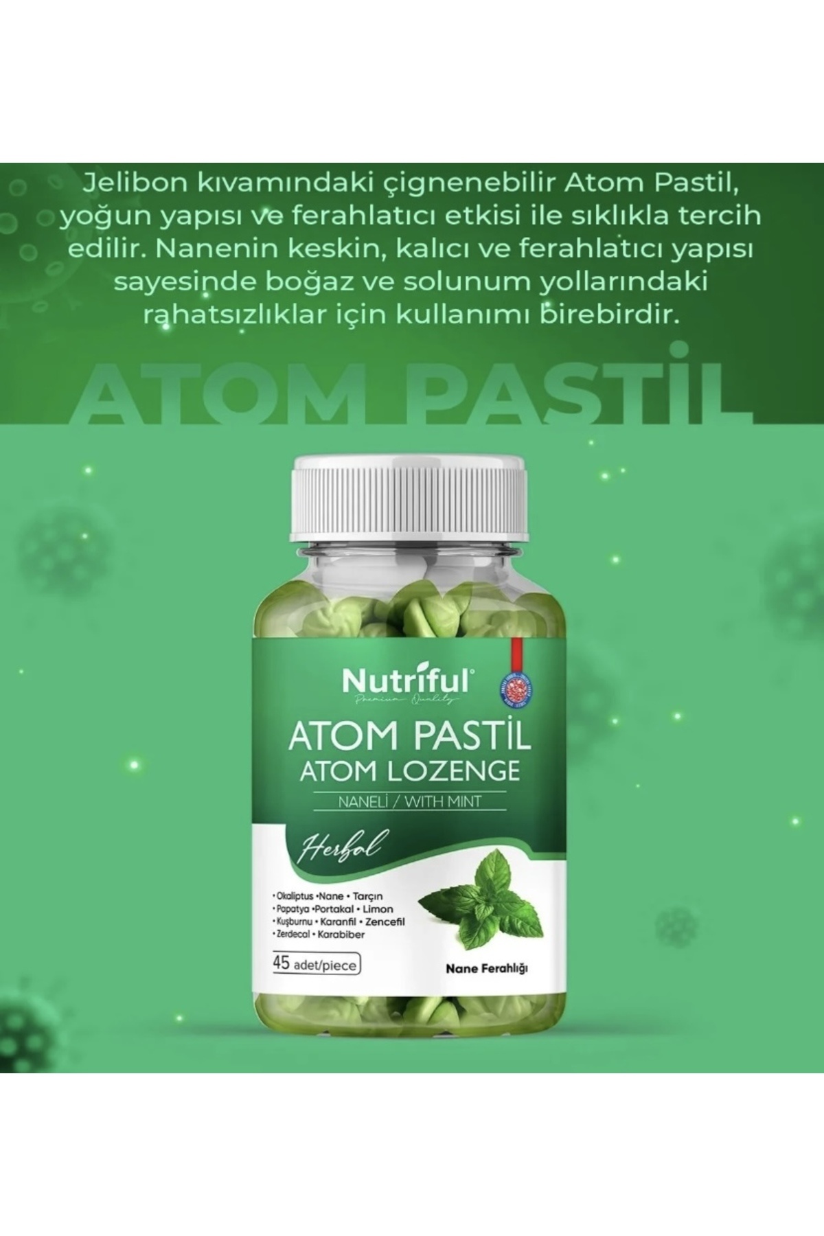 Jelibox Atom Pastil Enerji Protein Diyet Lifi NaneliOkaliptus, nane, tarçın, papatya, portakal, limon, kuşburnu, karanfil, zencefil, zerdeçal ve karabiber yağları içeren atom enerji pastili 45 Adet boğaz ve solunum yolları rahatsızlıkları için kullanıma uygundur