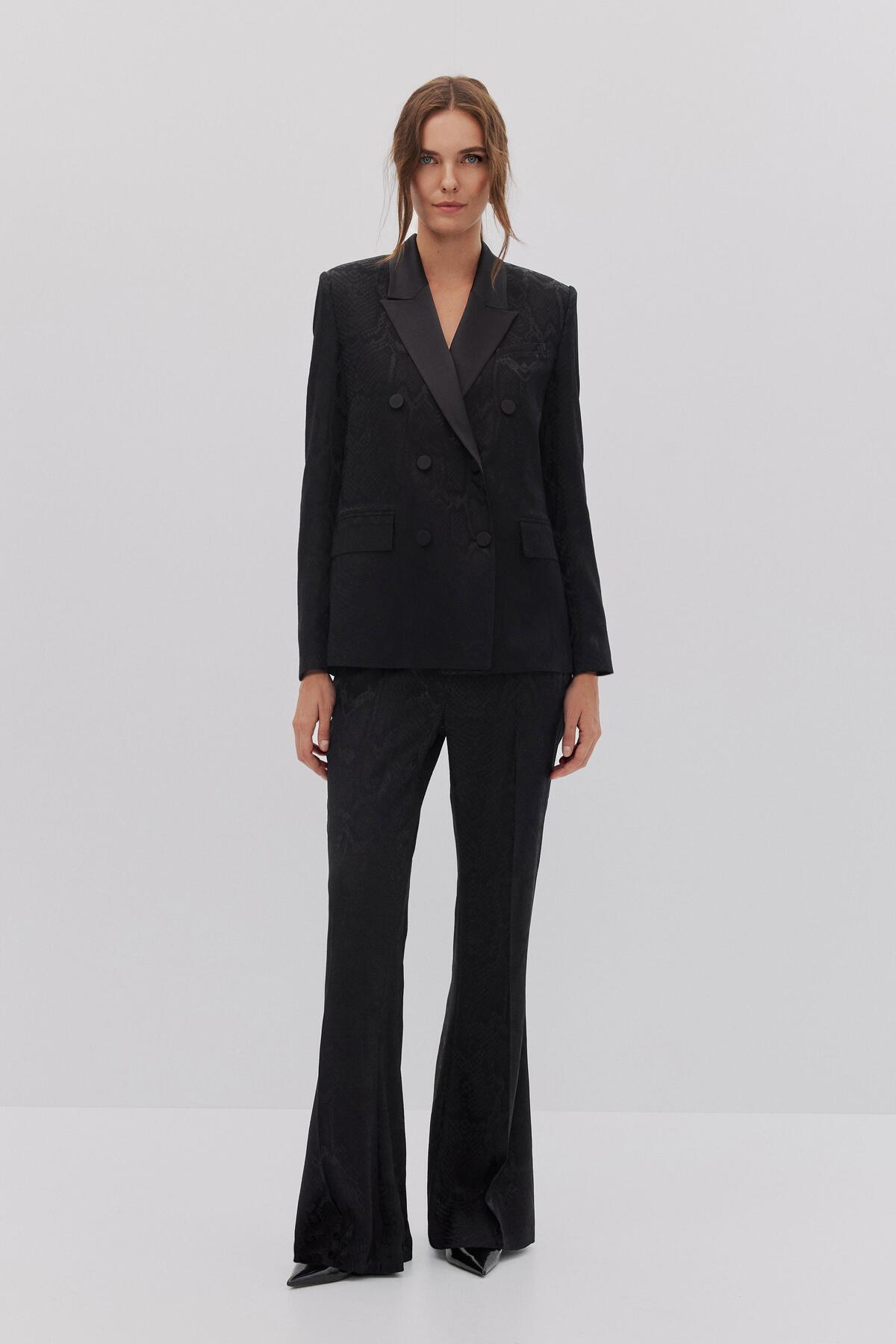 SATEN DETAYLI YILANLI JAKAR KRUVAZE BLAZER PANTOLON TAKIM