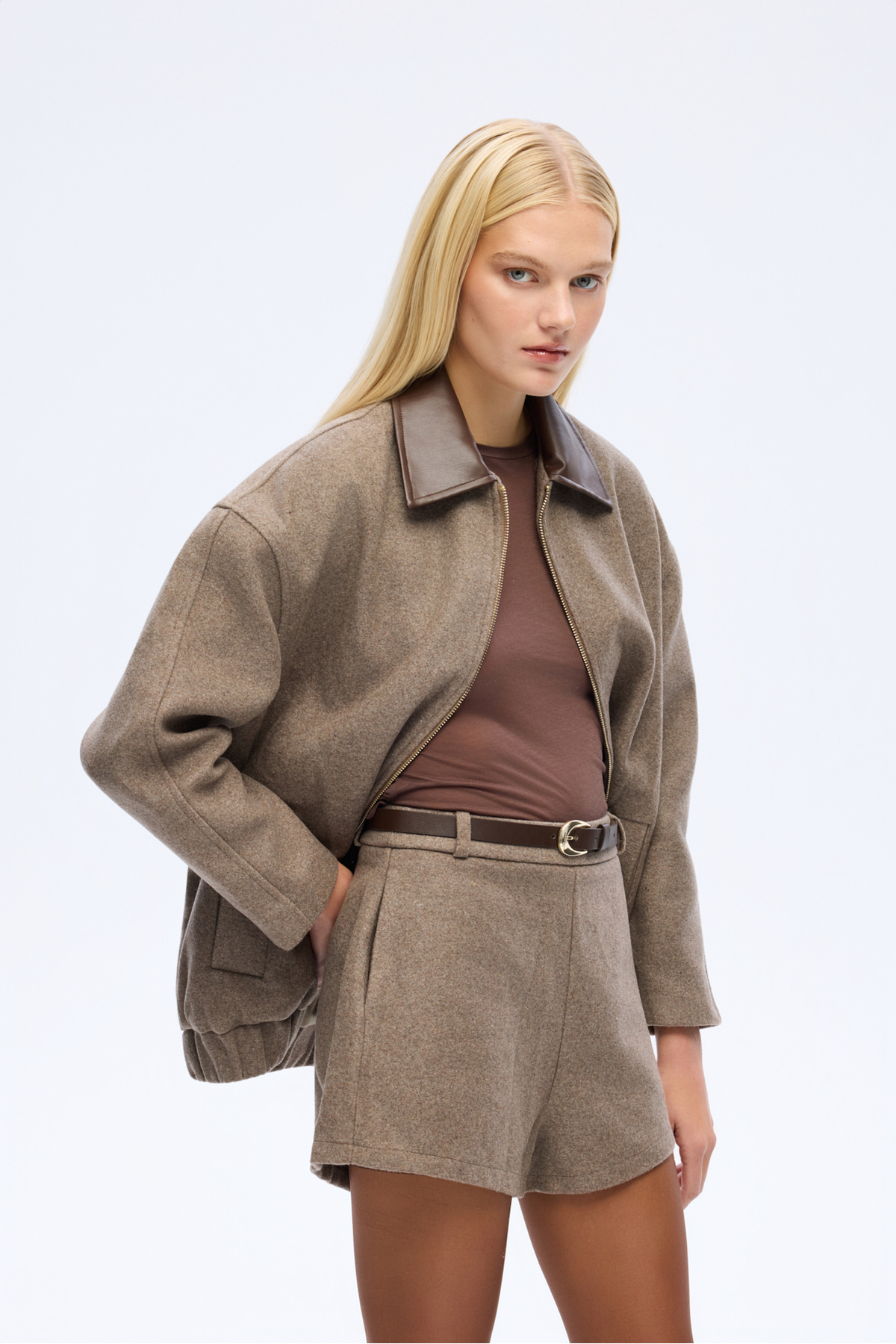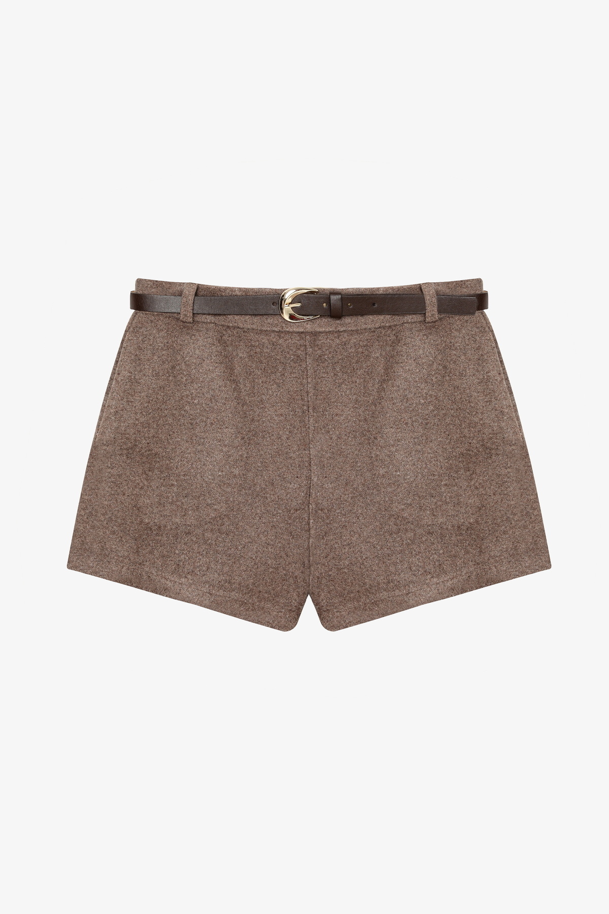 Kemerli Kaşe Mini Şort Vizon