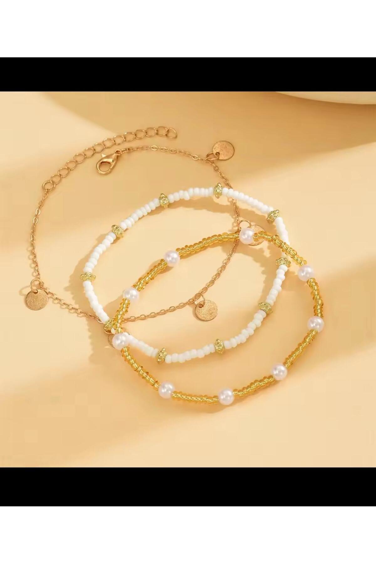 - Zarif tasarımıyla dikkat çeken 3 lü pullu zincirli incili halhal, her türlü kıyafetle uyum sağlar.