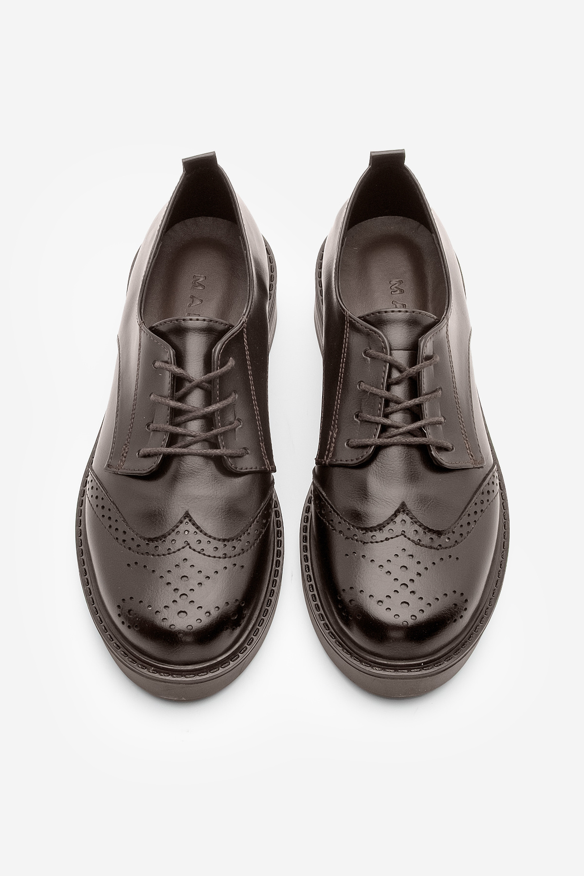 Siyah ve kahve renk seçenekleriyle öne çıkan bu kadın oxford ayakkabı, zamansız şıklığı modern detaylarla buluşturuyor.